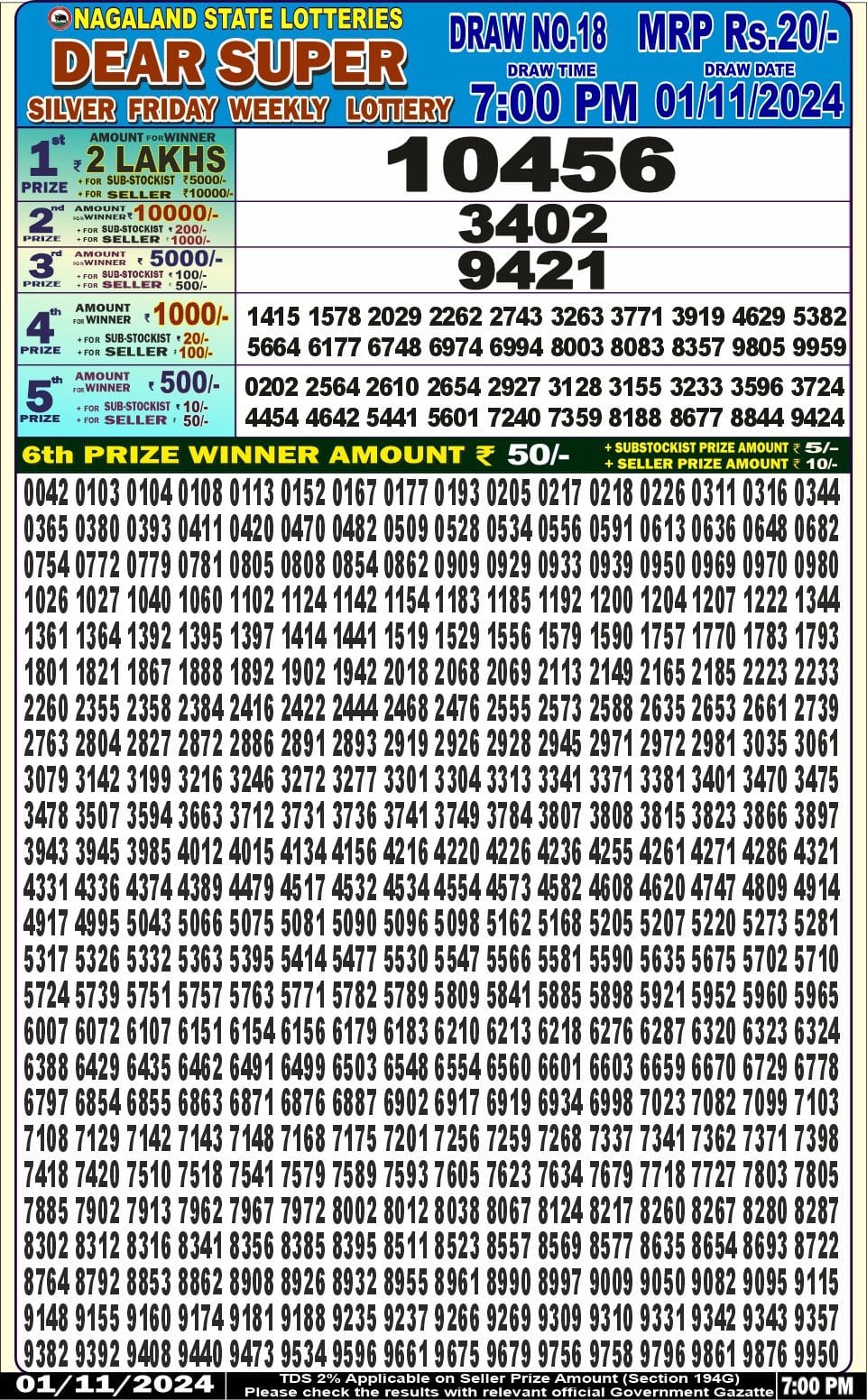 Dear super silver Friday weekly lottery 7pm result 1/11/24