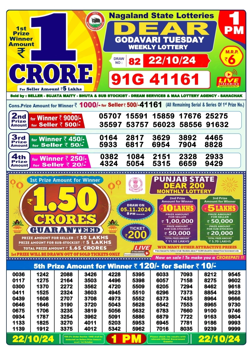 Dear godavari tuesday weekly lottery 1pm result 22/10/24