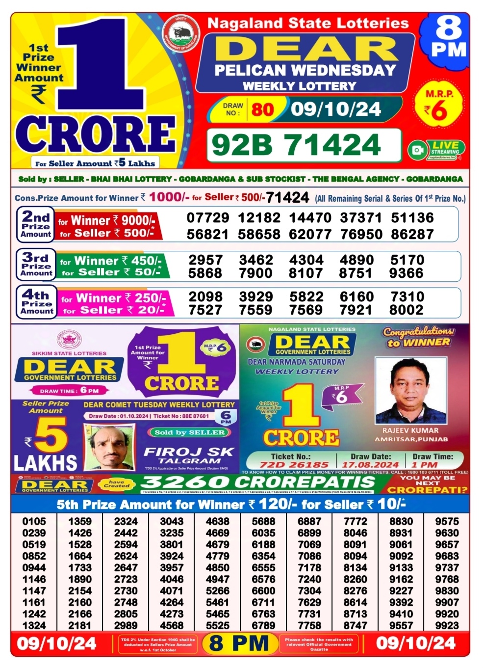 Dear super peral Wednesday weekly lottery 7pm result 9/10/24