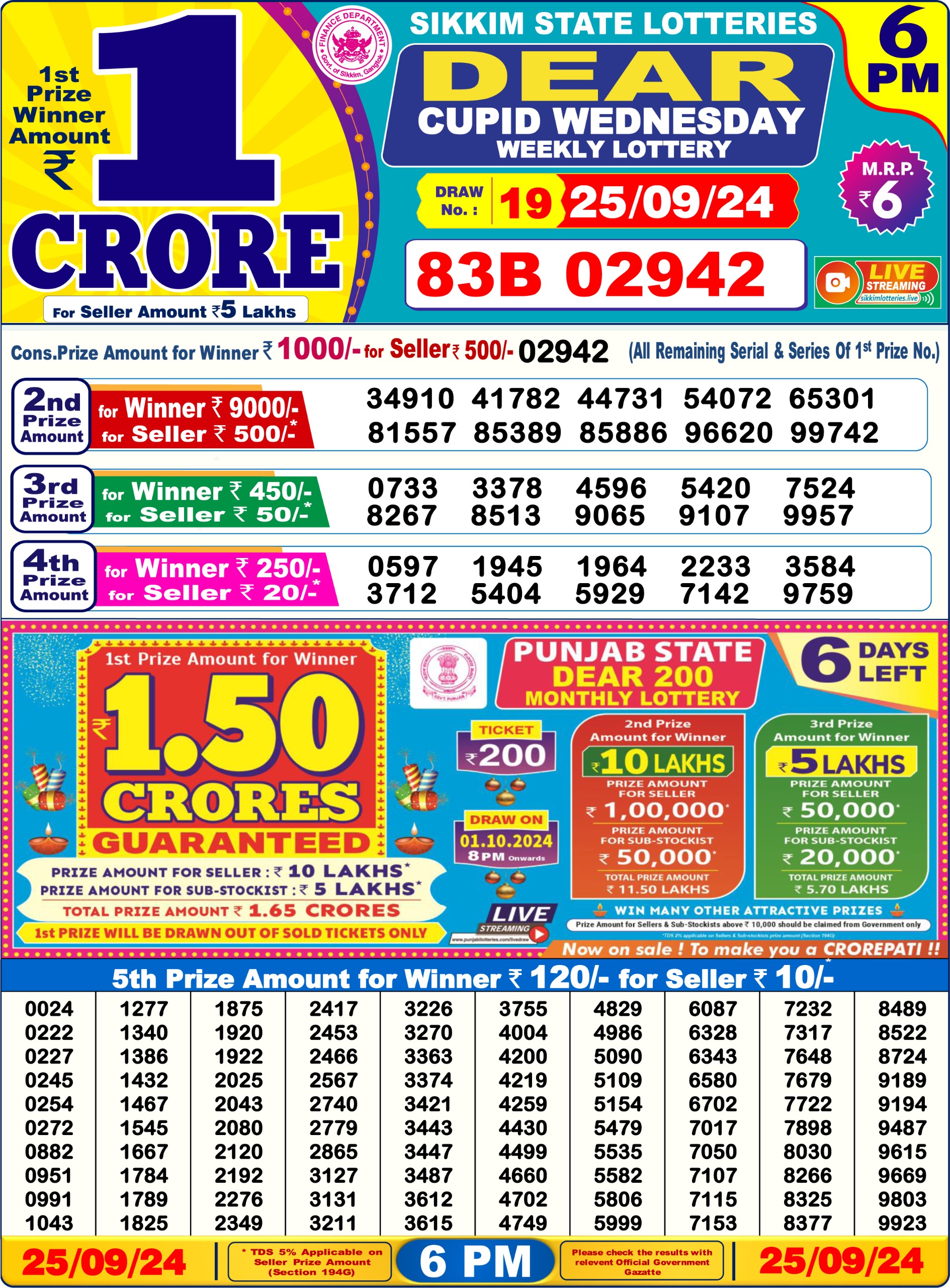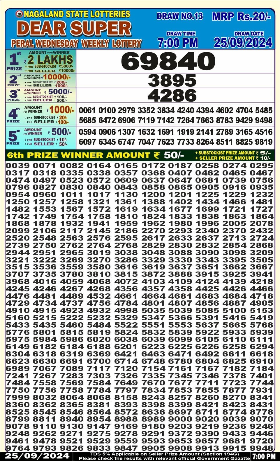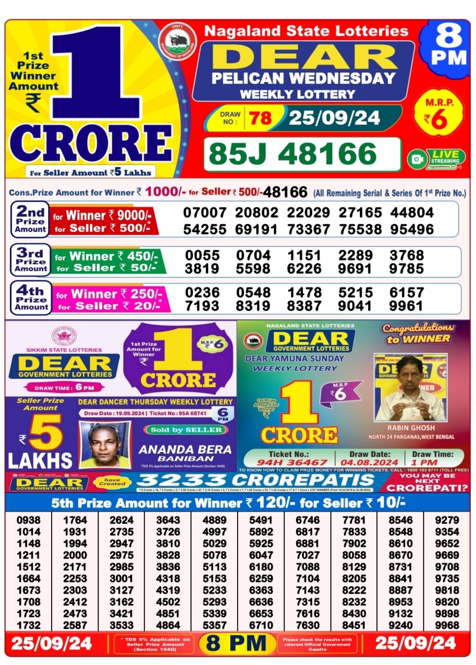 Dear super peral Wednesday weekly lottery 7pm result 25/09/24