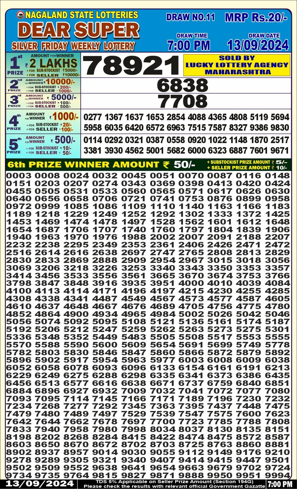 Dear super silver Friday weekly lottery 7pm result 13/09/24