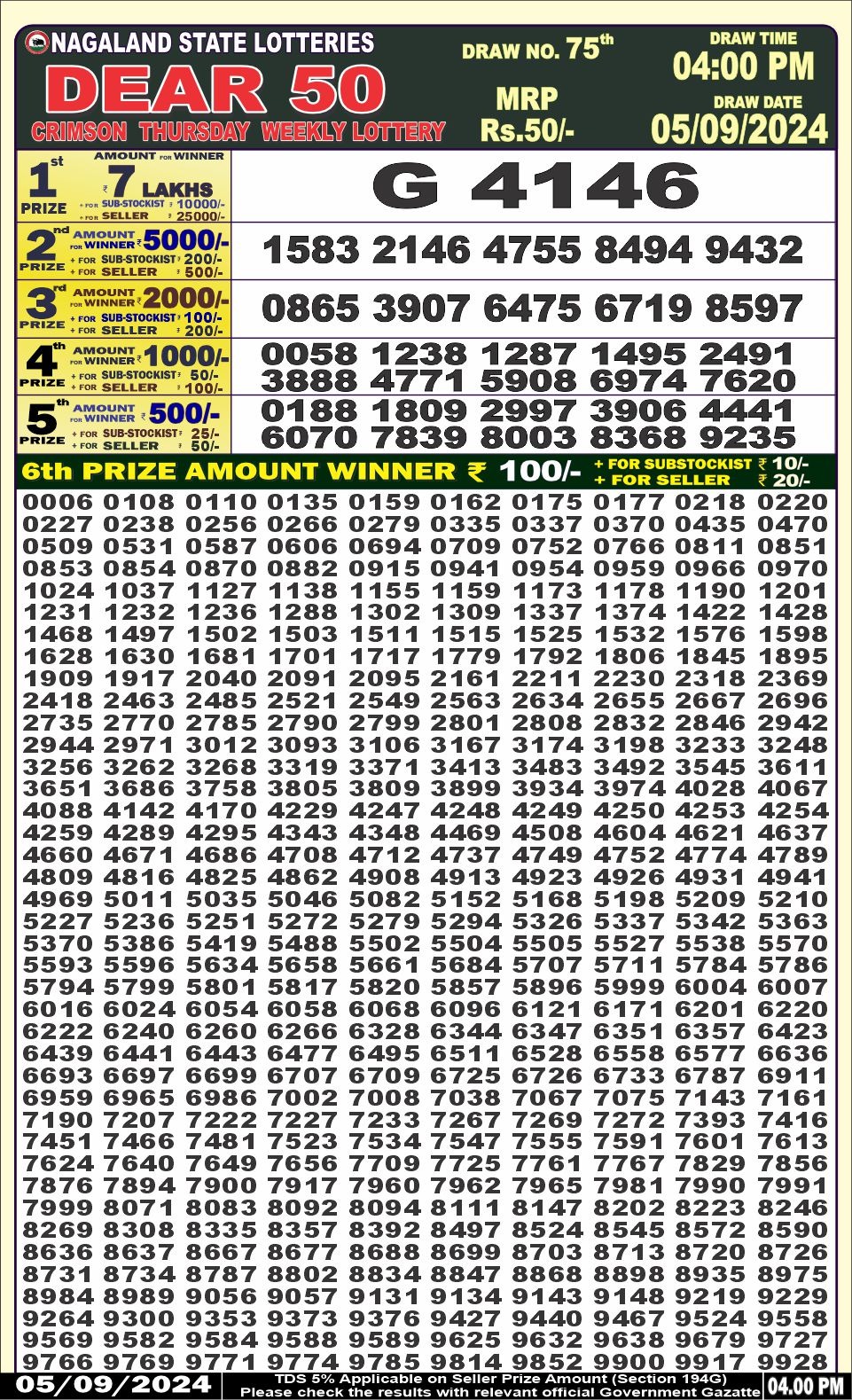 Dear50 crimson Thursday weekly lottery 4pm result 5/09/24