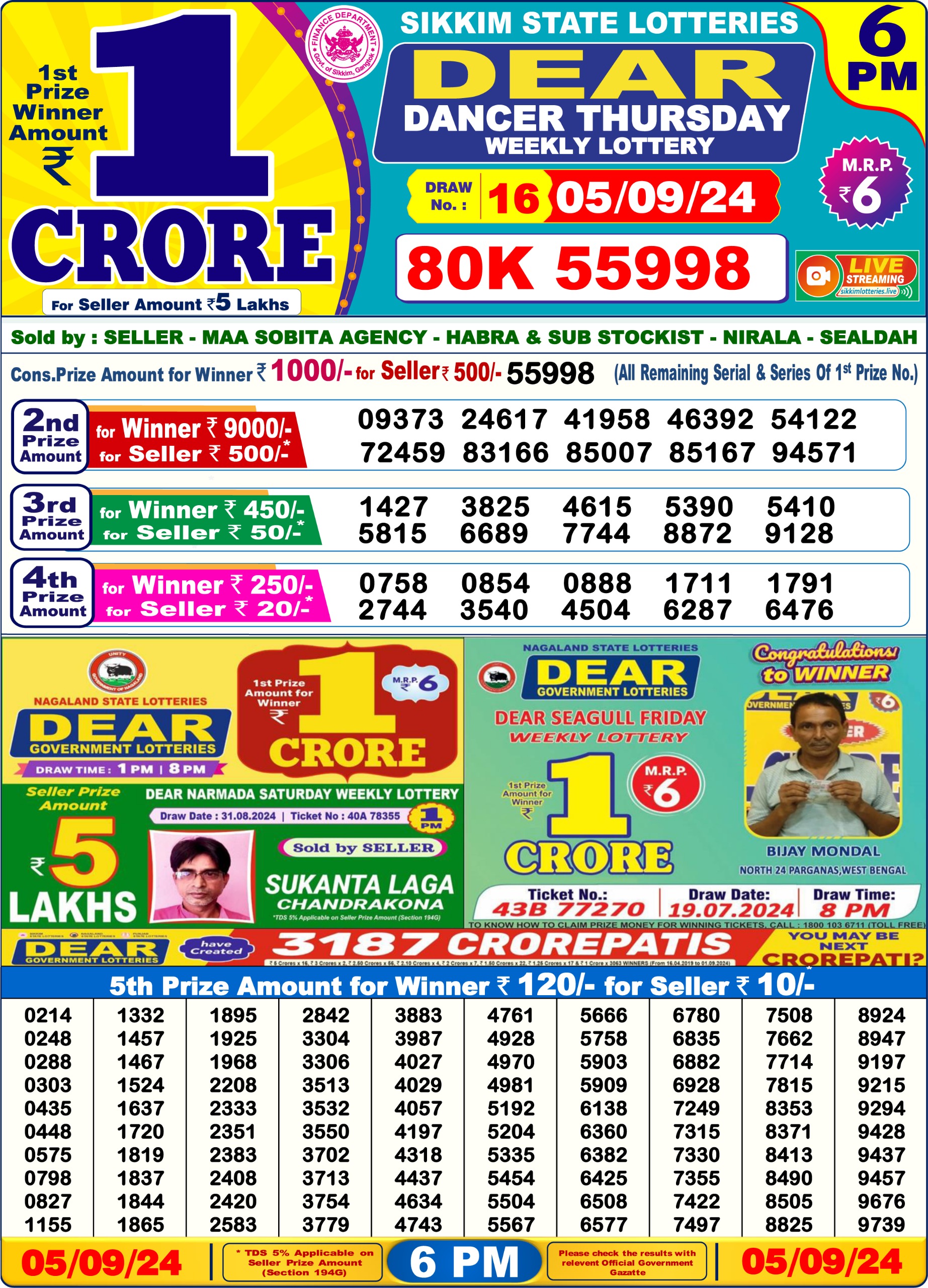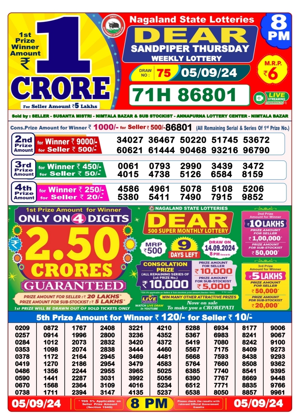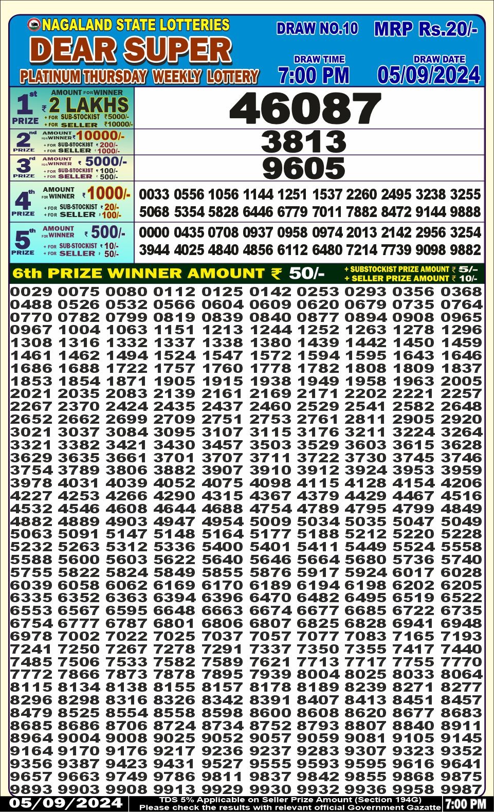 Dear super platinum Thursday weekly lottery 7pm result 5/09/24