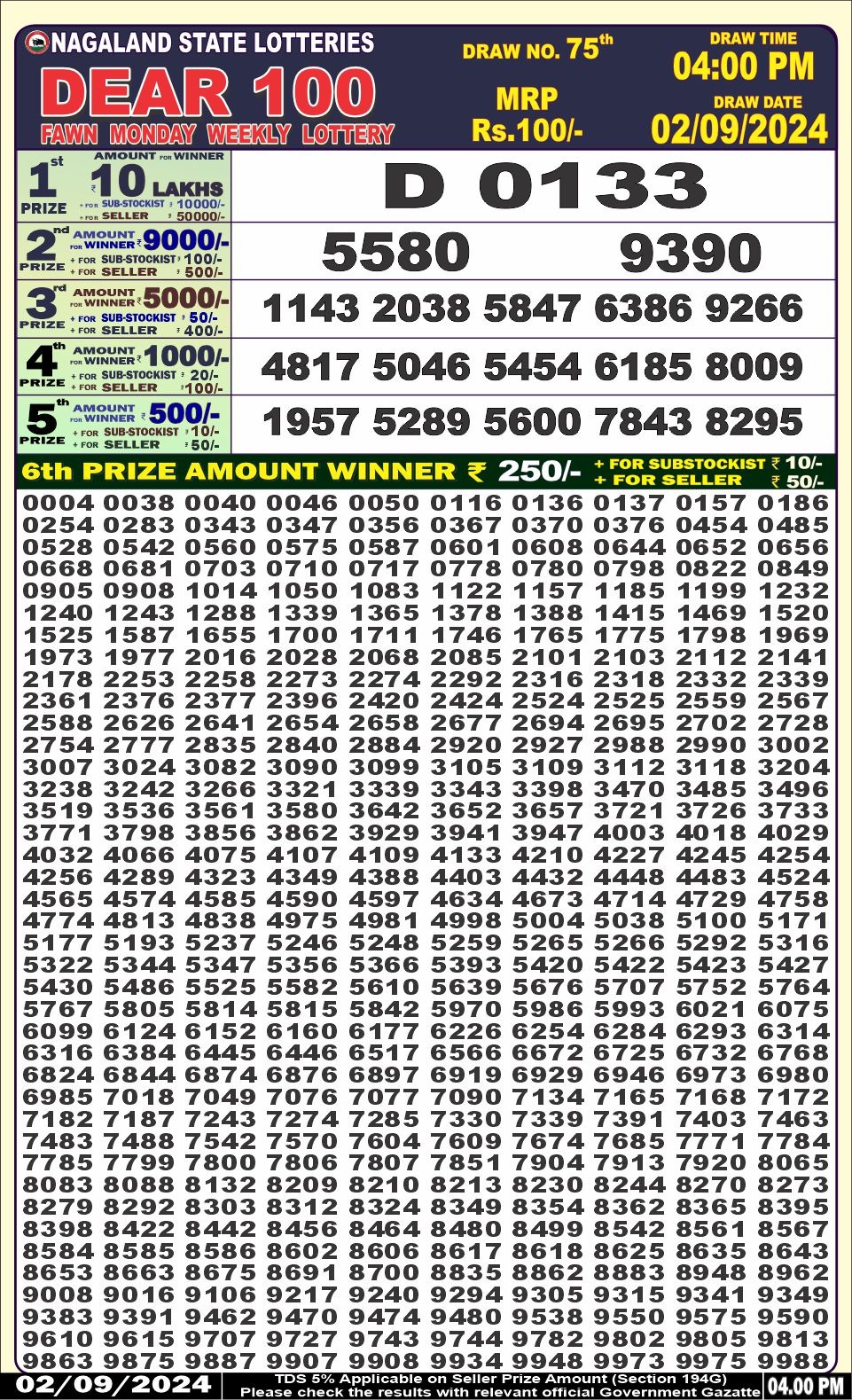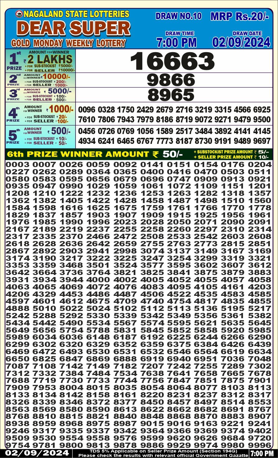 Dear10 firm monday weekly lottery 7pm result 2/09/24