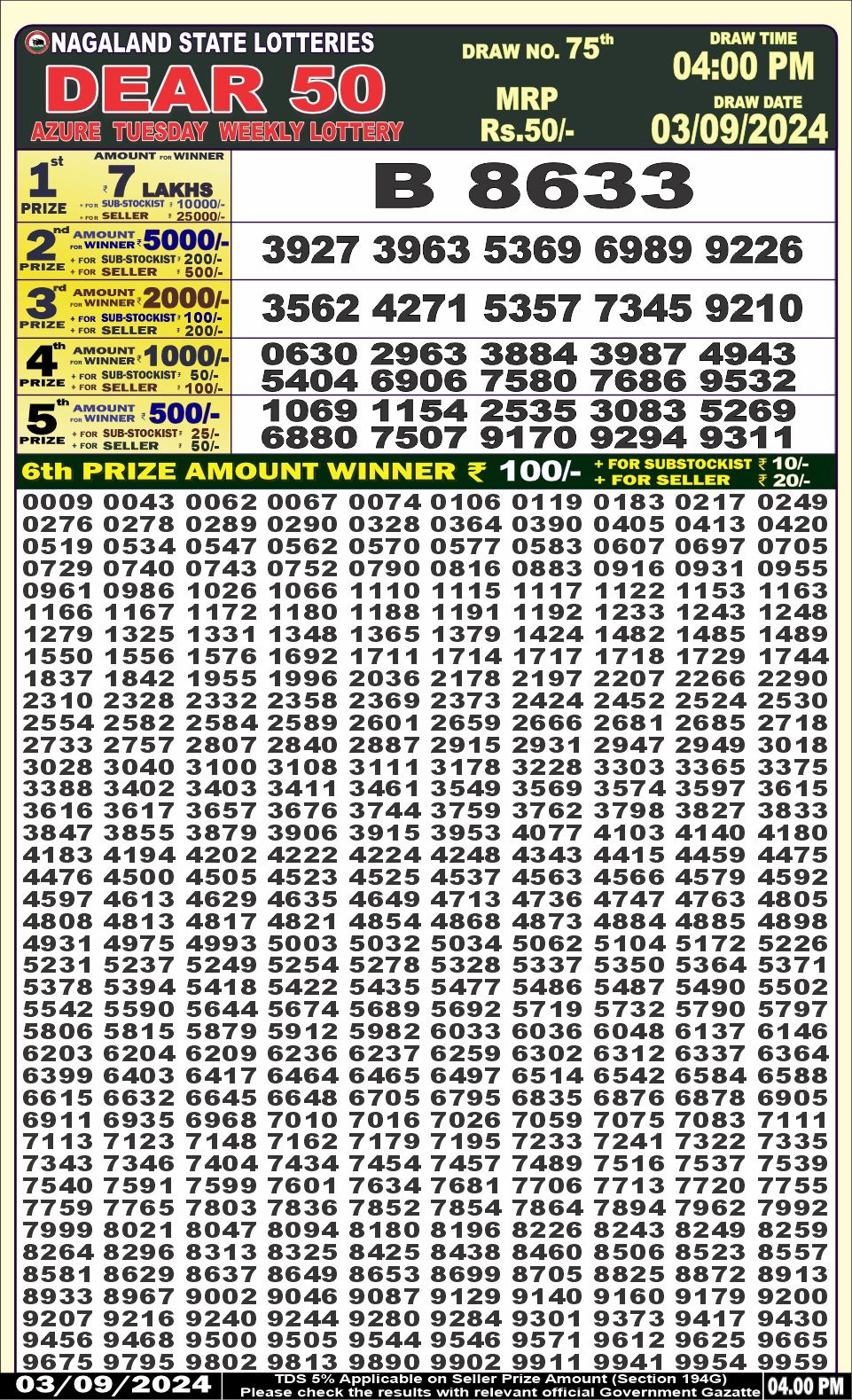 Dear50 azure tuesday weekly lottery 4pm result 3/09/24