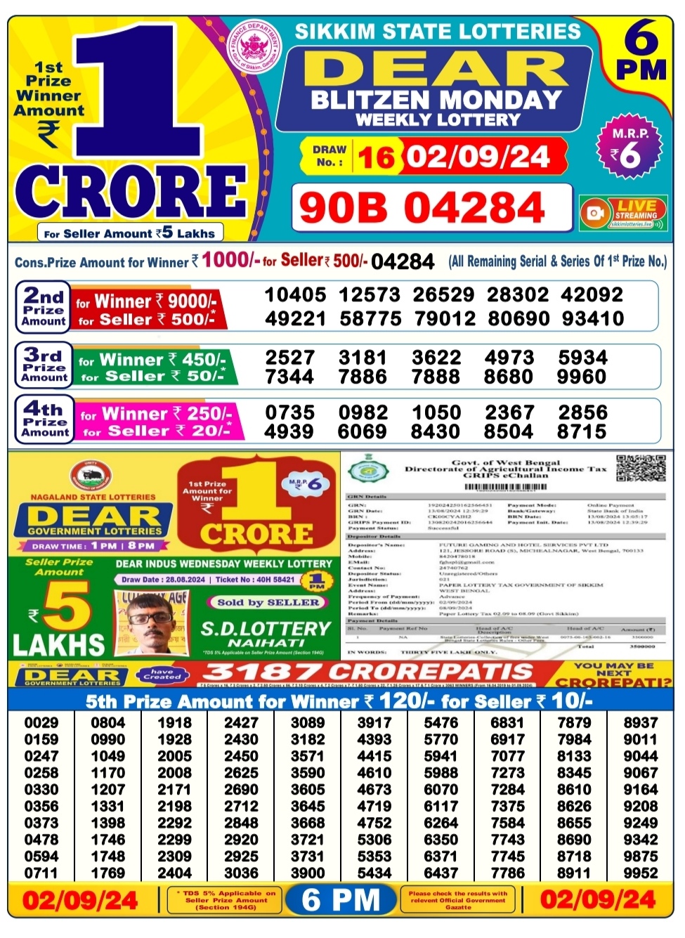 Dear super gold monday weekly lottery 7pm result 2/09/24