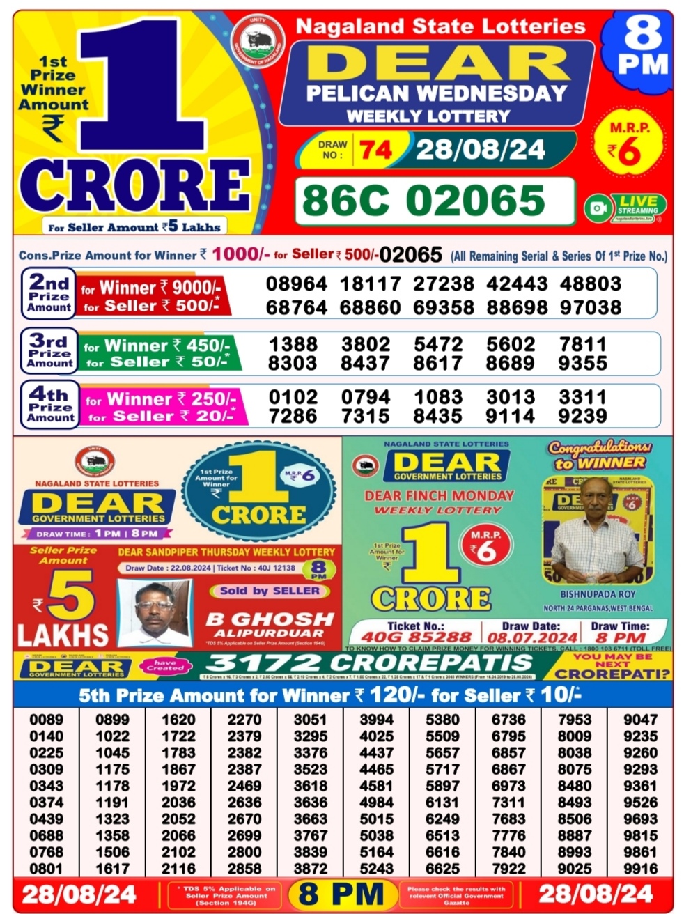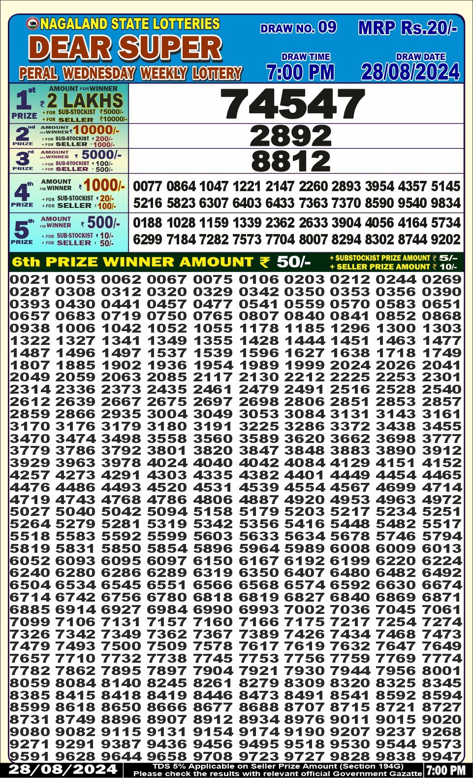 Dear super peral Wednesday weekly lottery 7pm result 28/08/24