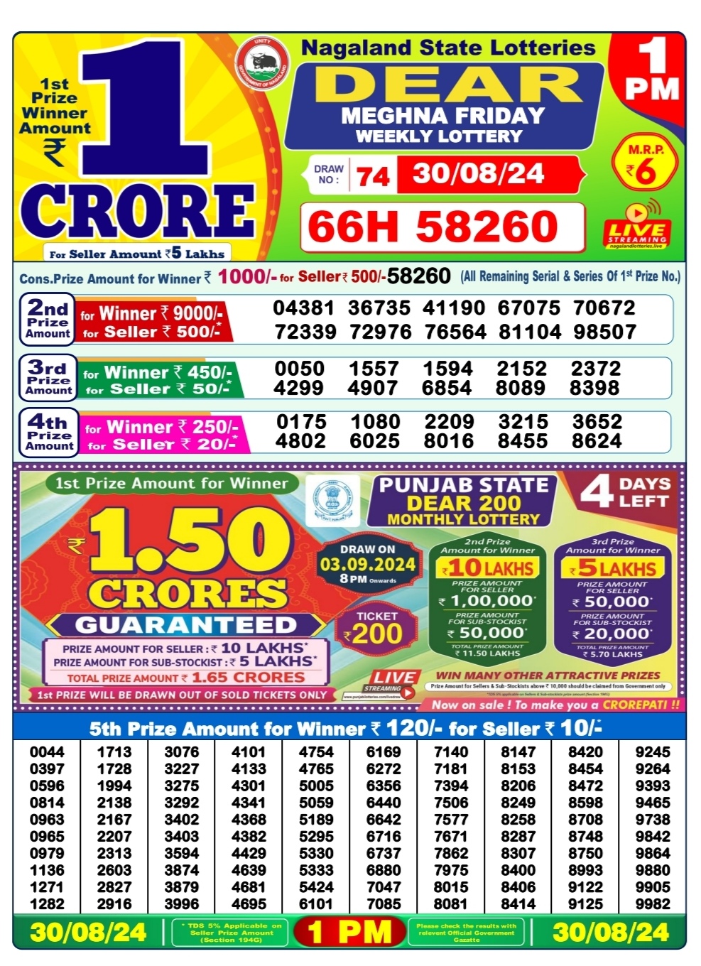 Dear meghna Friday weekly lottery 1pm result 30/08/24