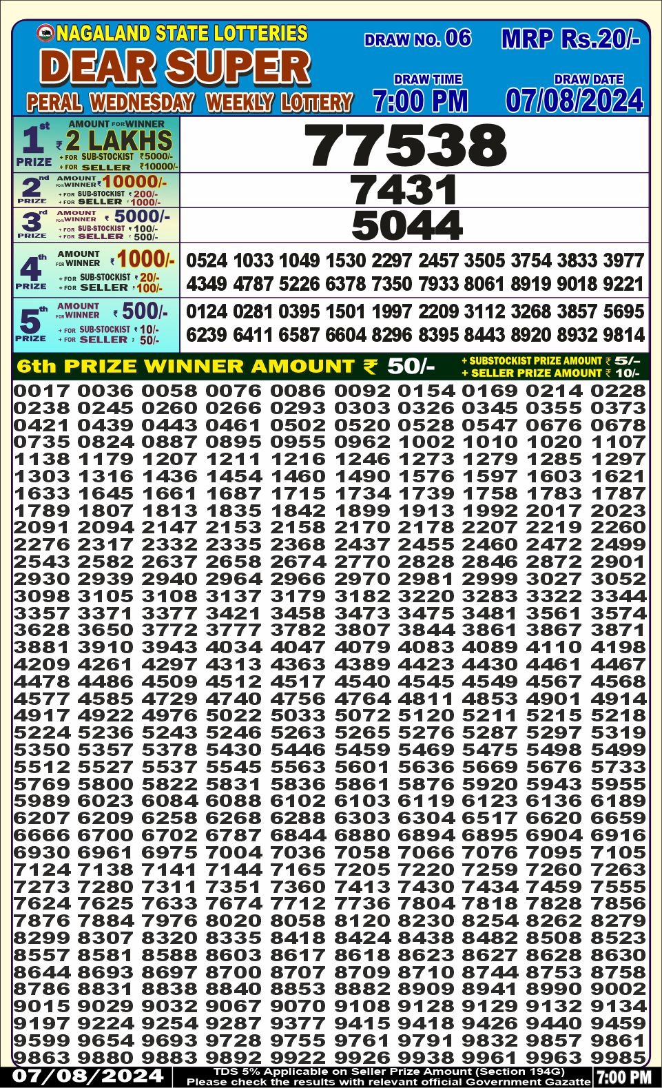 Dear super peral Wednesday weekly lottery 7pm result 7/08/24