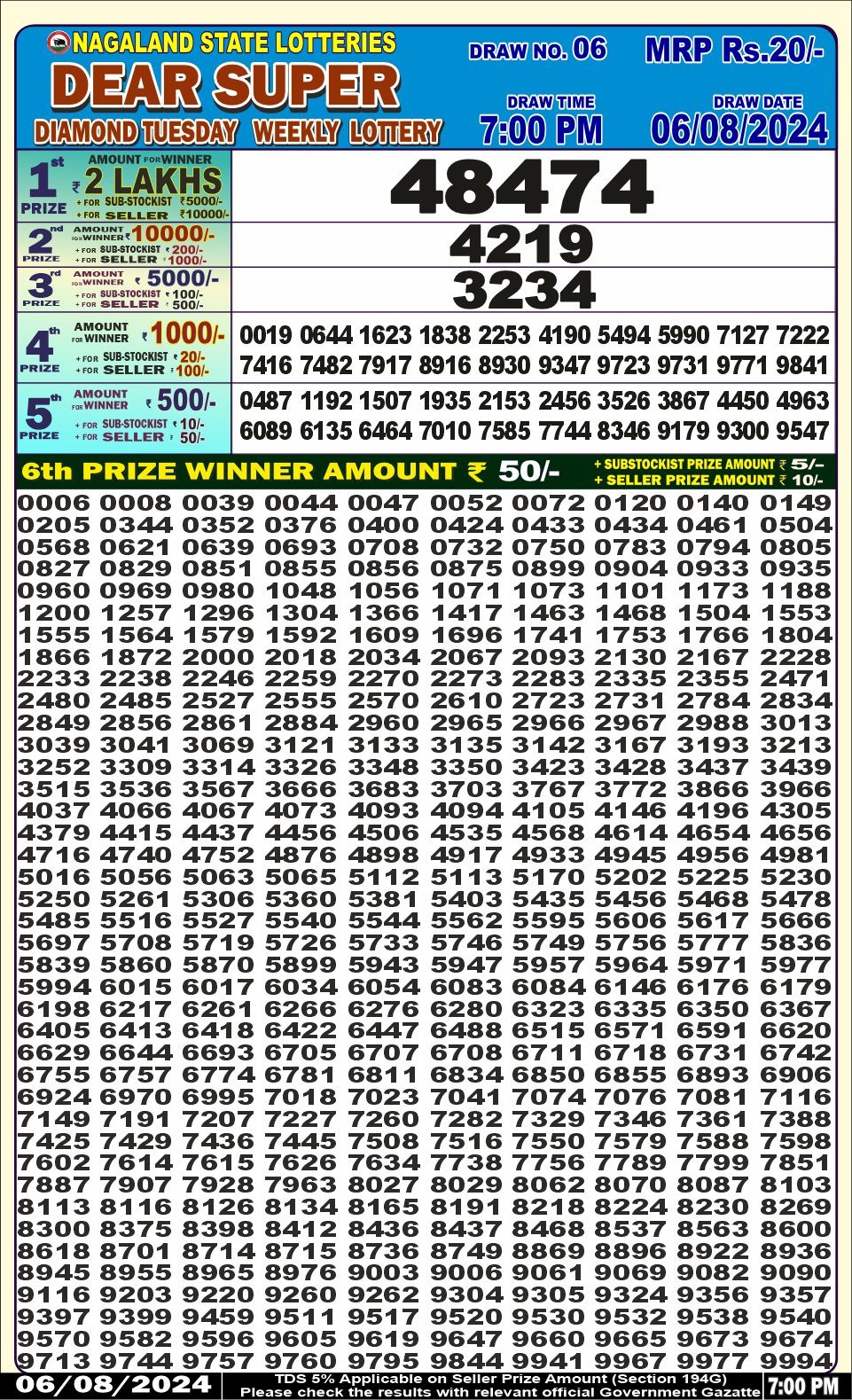 Dear super diamond tuesday weekly lottery 7pm result 6/08/24