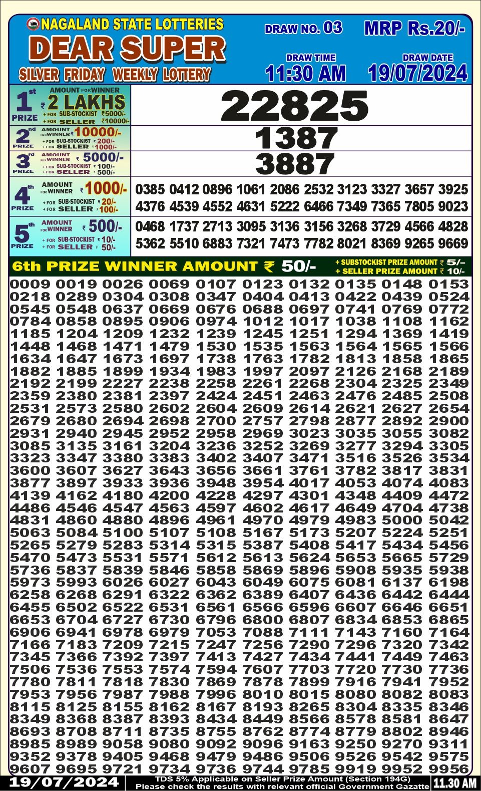 Dear super silver Friday weekly lottery 11.30am result 19/07/24