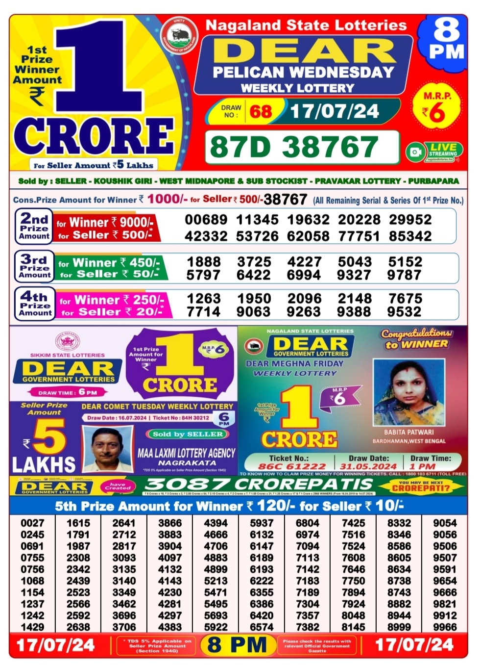 Dear meghna Friday weekly lottery 1pm result 19/07/24