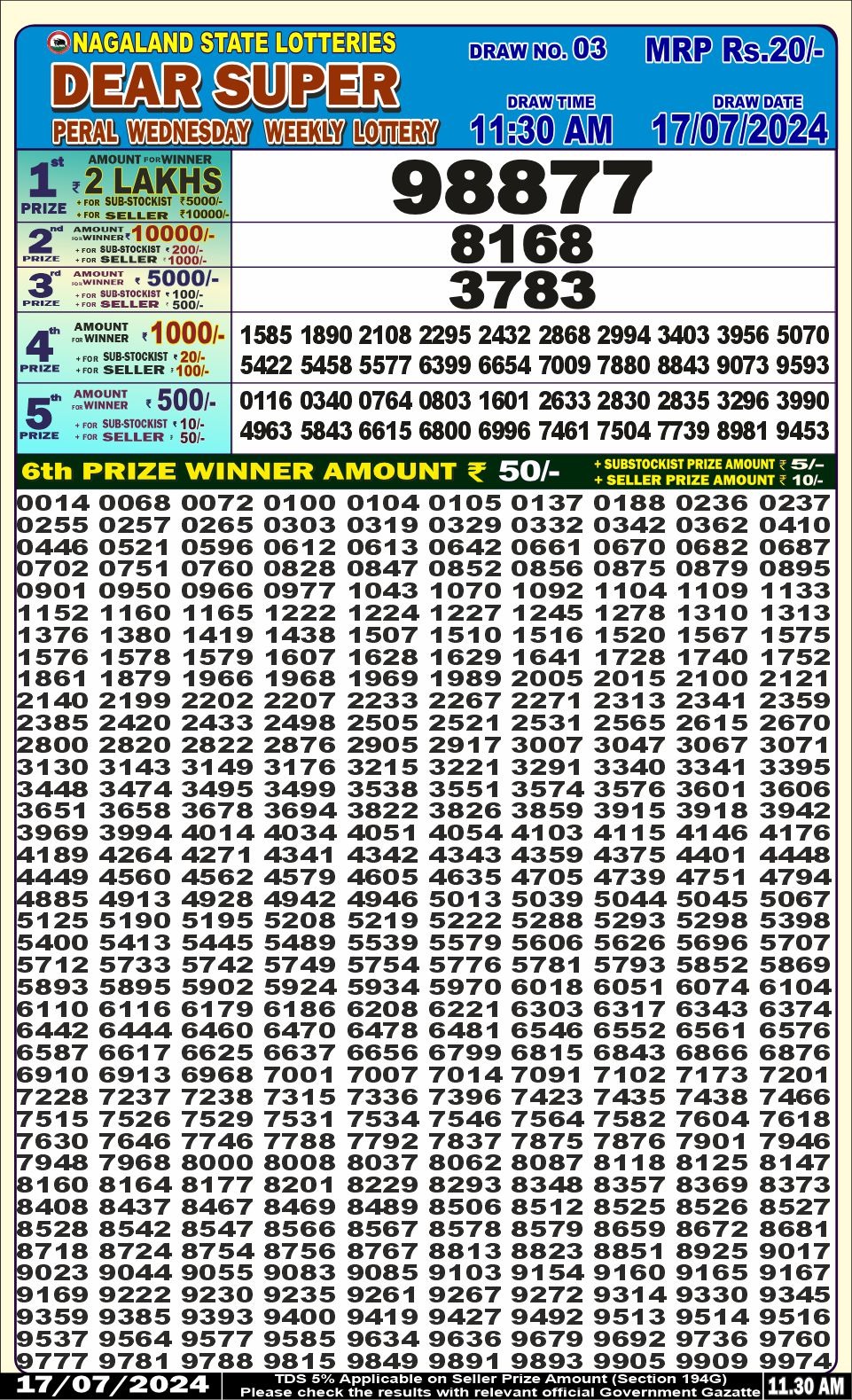 Dear super peral Wednesday weekly lottery 11.30am result 17/07/24