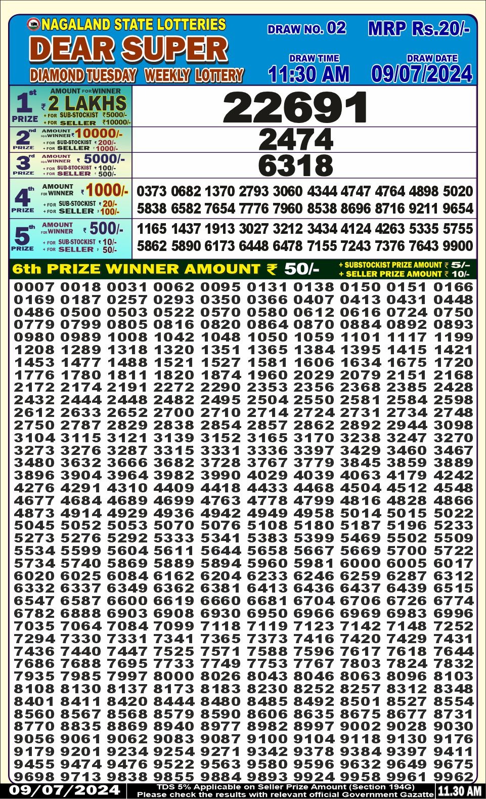 Dear super diamond tuesday weekly lottery 11.30am result 9/07/24
