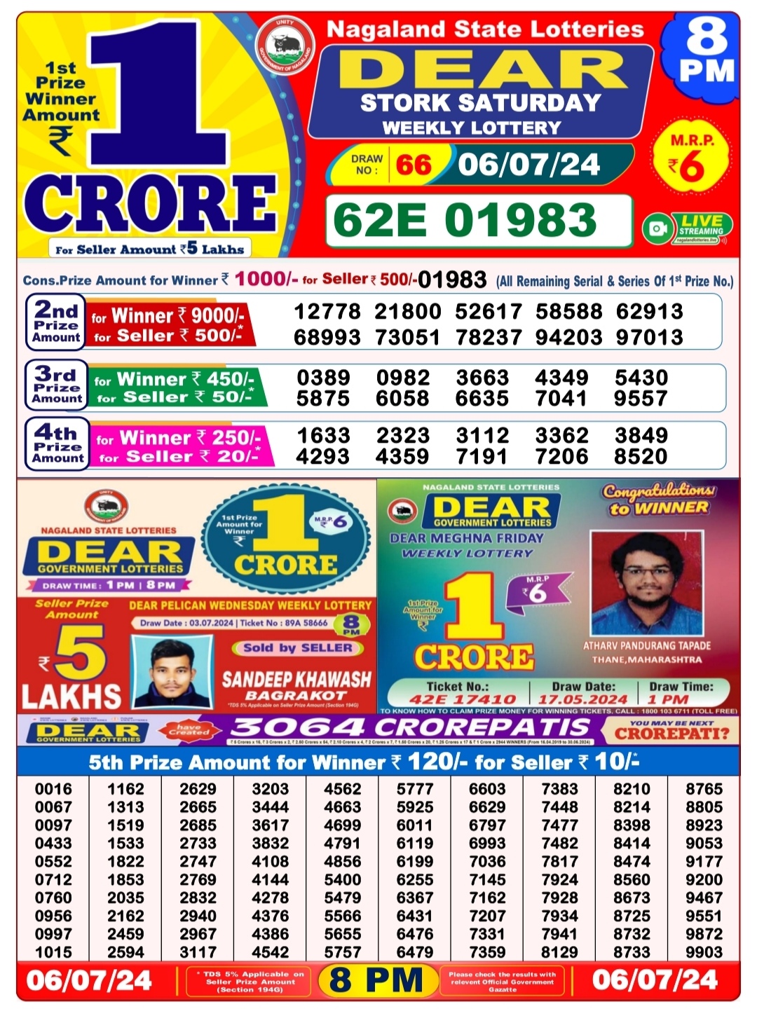 Dear10 tough saturday weekly lottery 7pm result 6/07/24