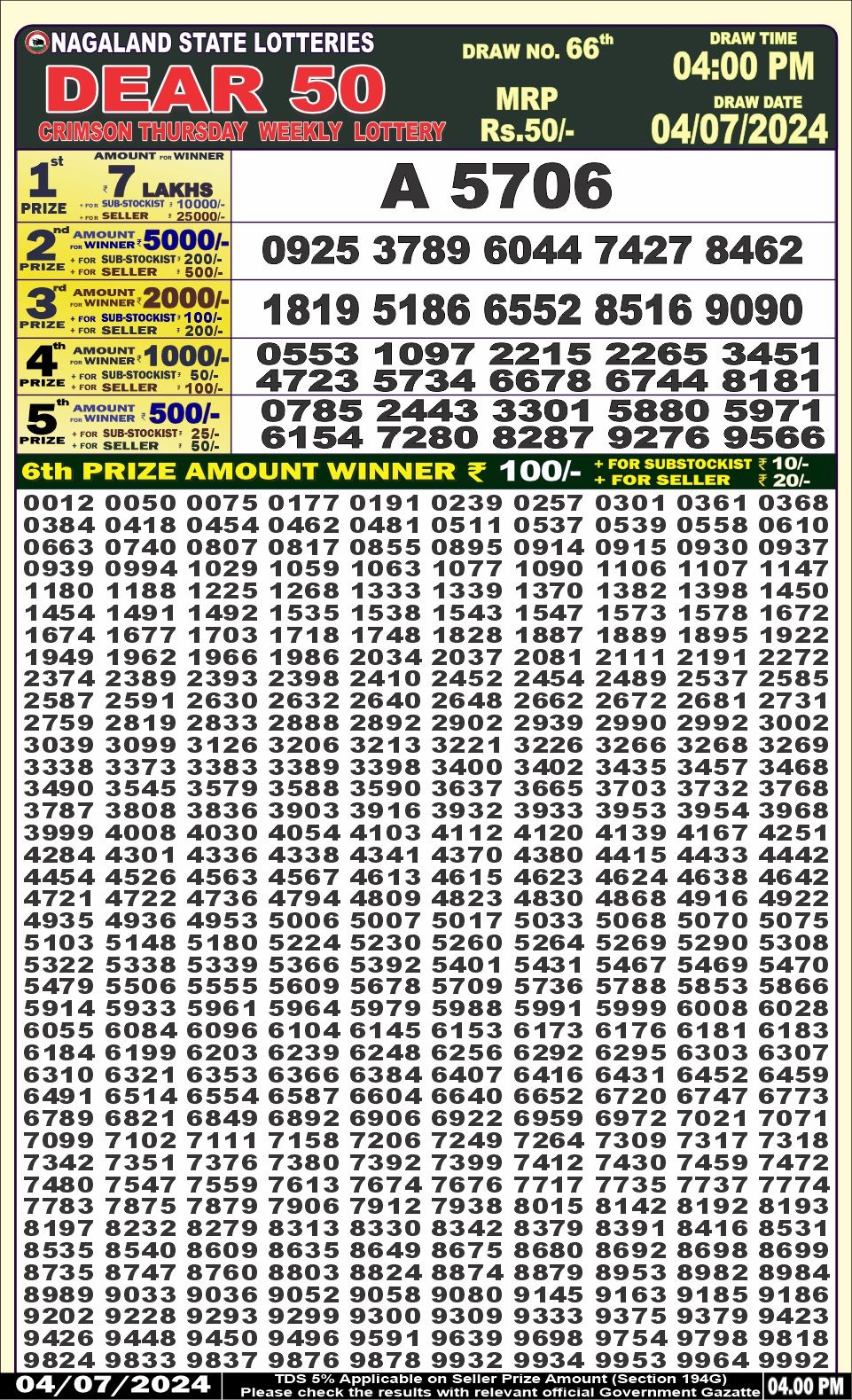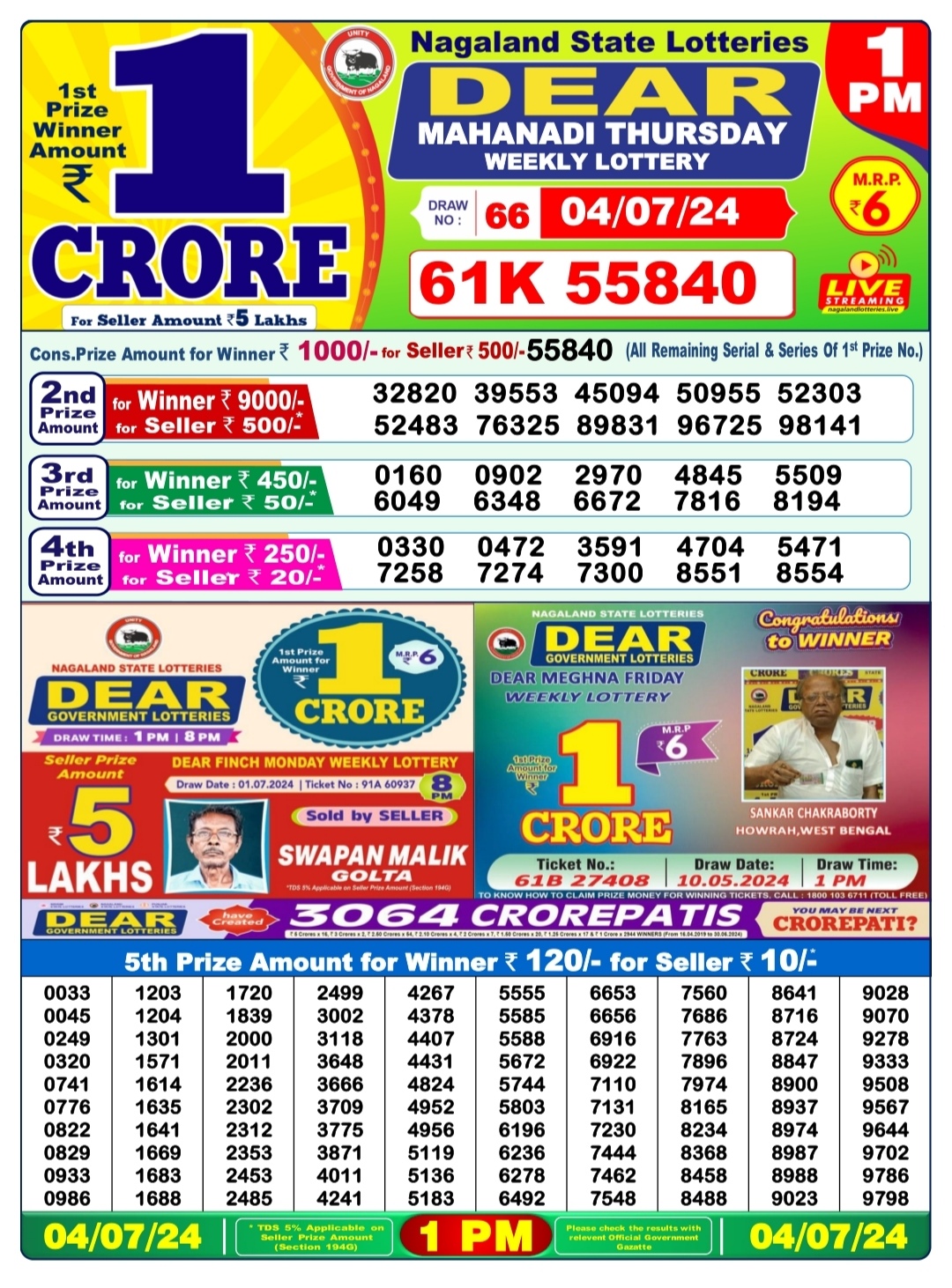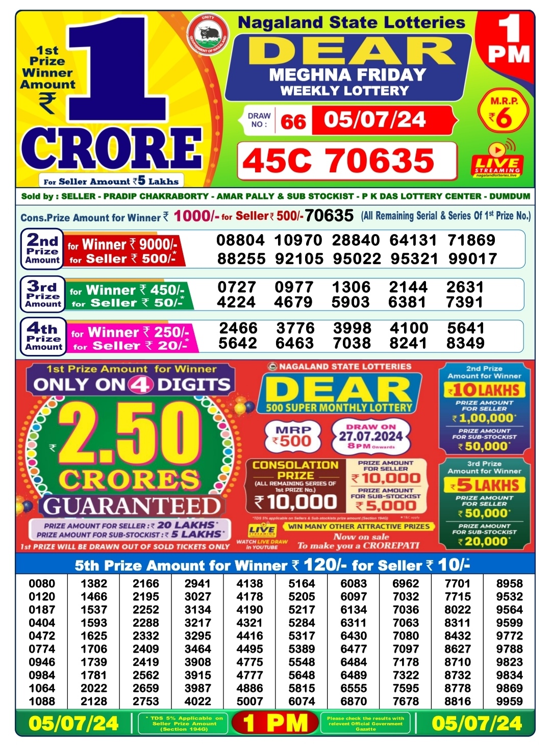 Nagaland State & Sikkim State Lottery Sambad Result 1PM 6PM 8PM