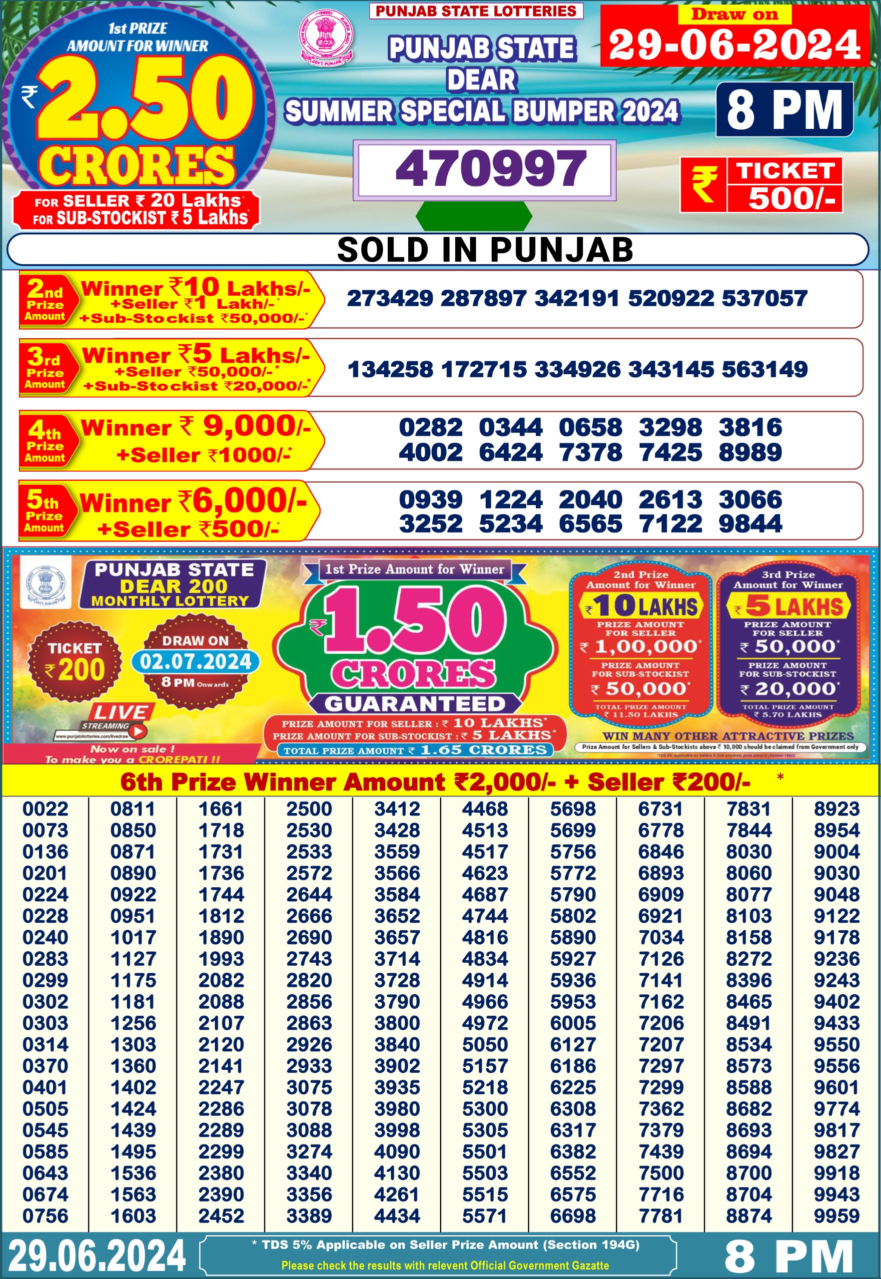 Dear50 cyan saturday weekly lottery 4pm result 29/06/24
