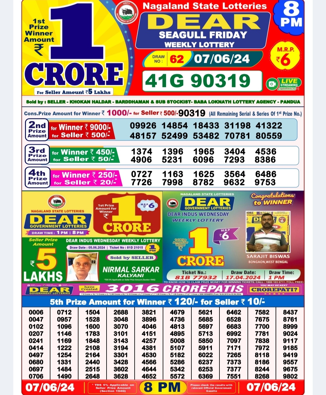 Dear seagull Friday weekly lottery 8pm result 7/06/24