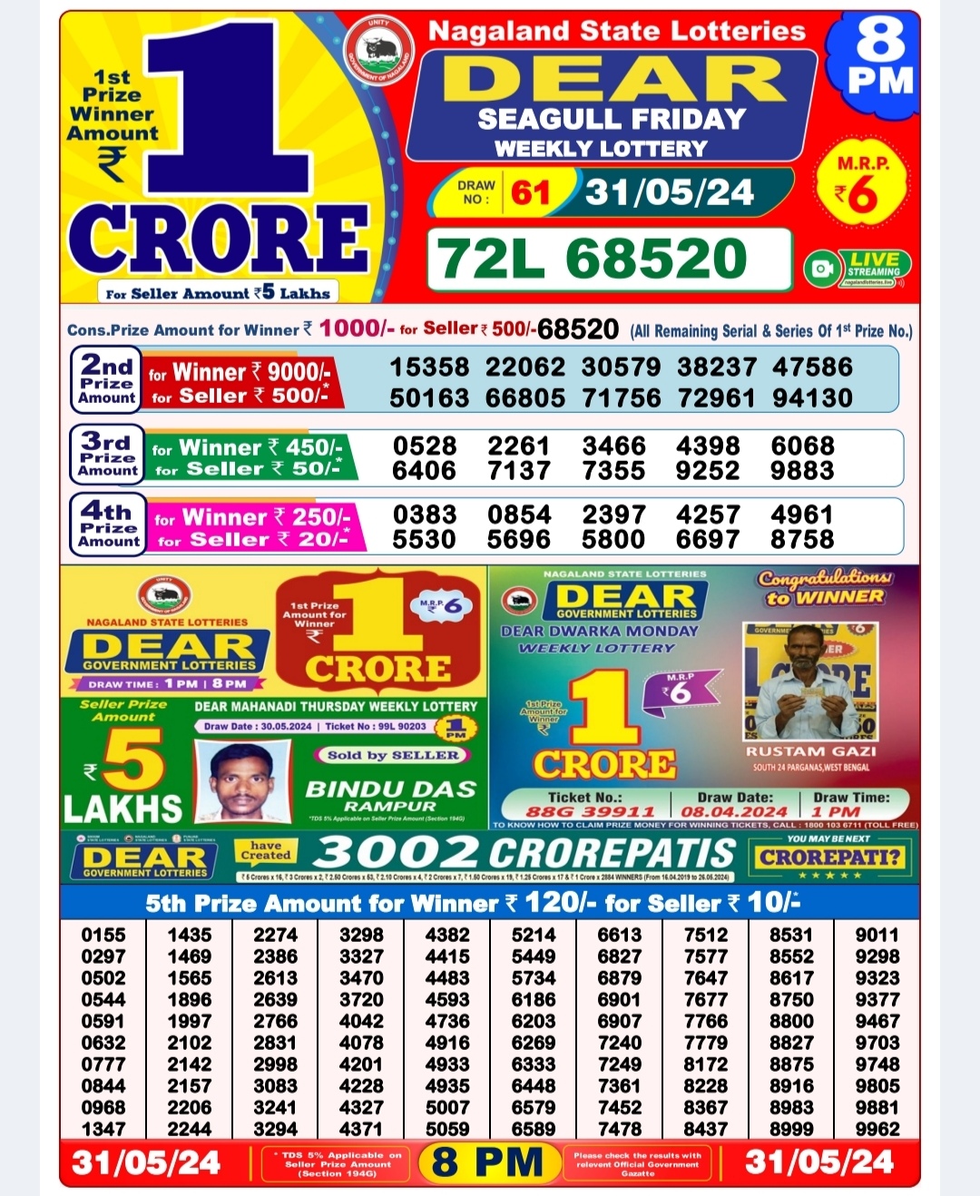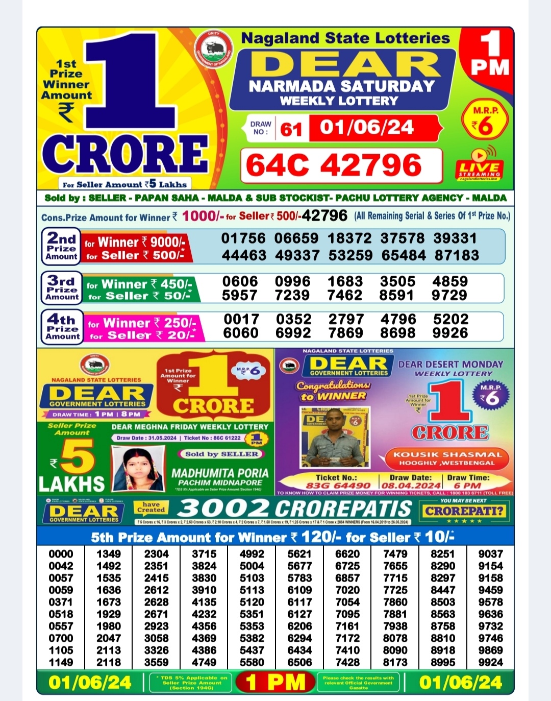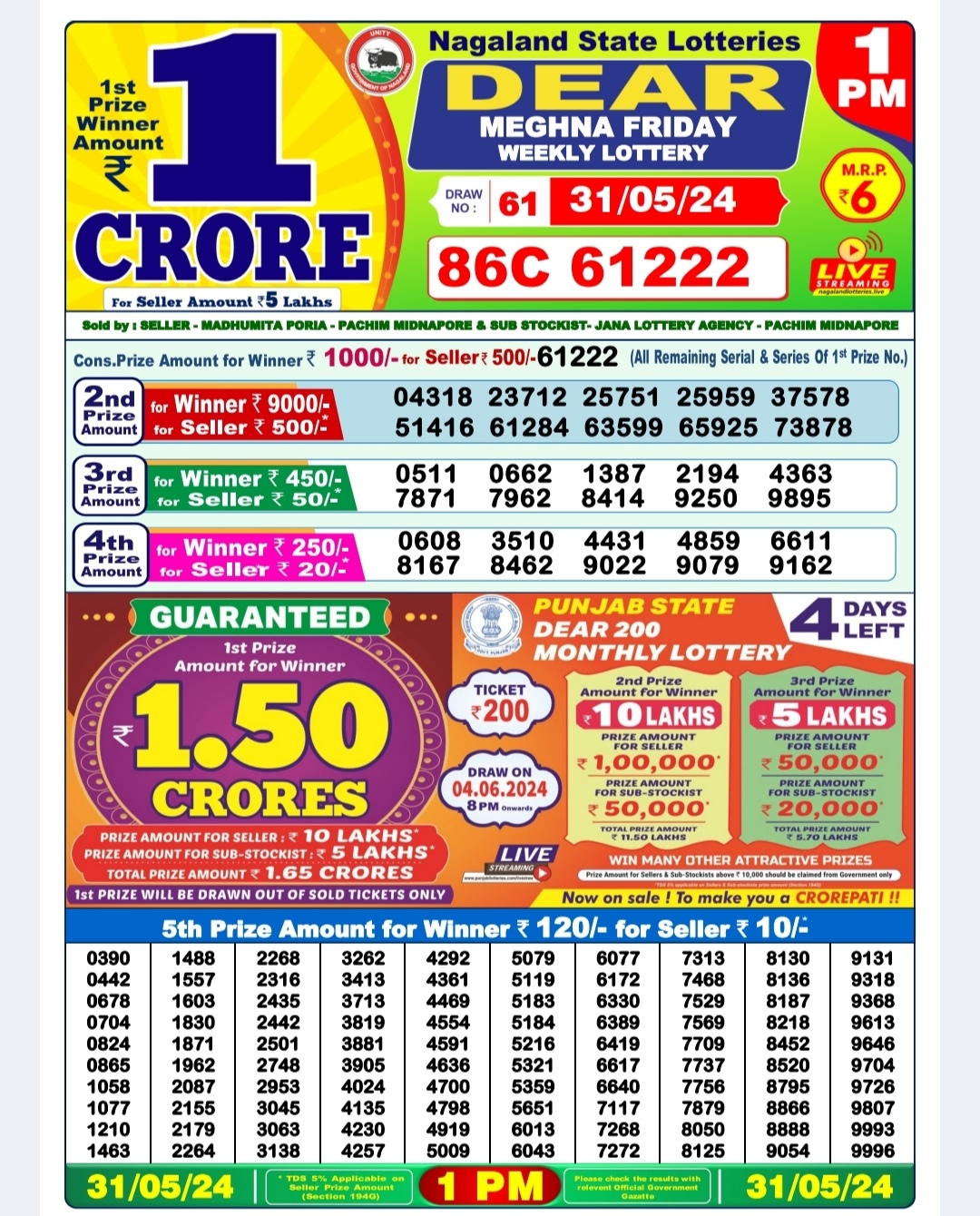 Nagaland State & Sikkim State Lottery Sambad Result 1PM 6PM 8PM