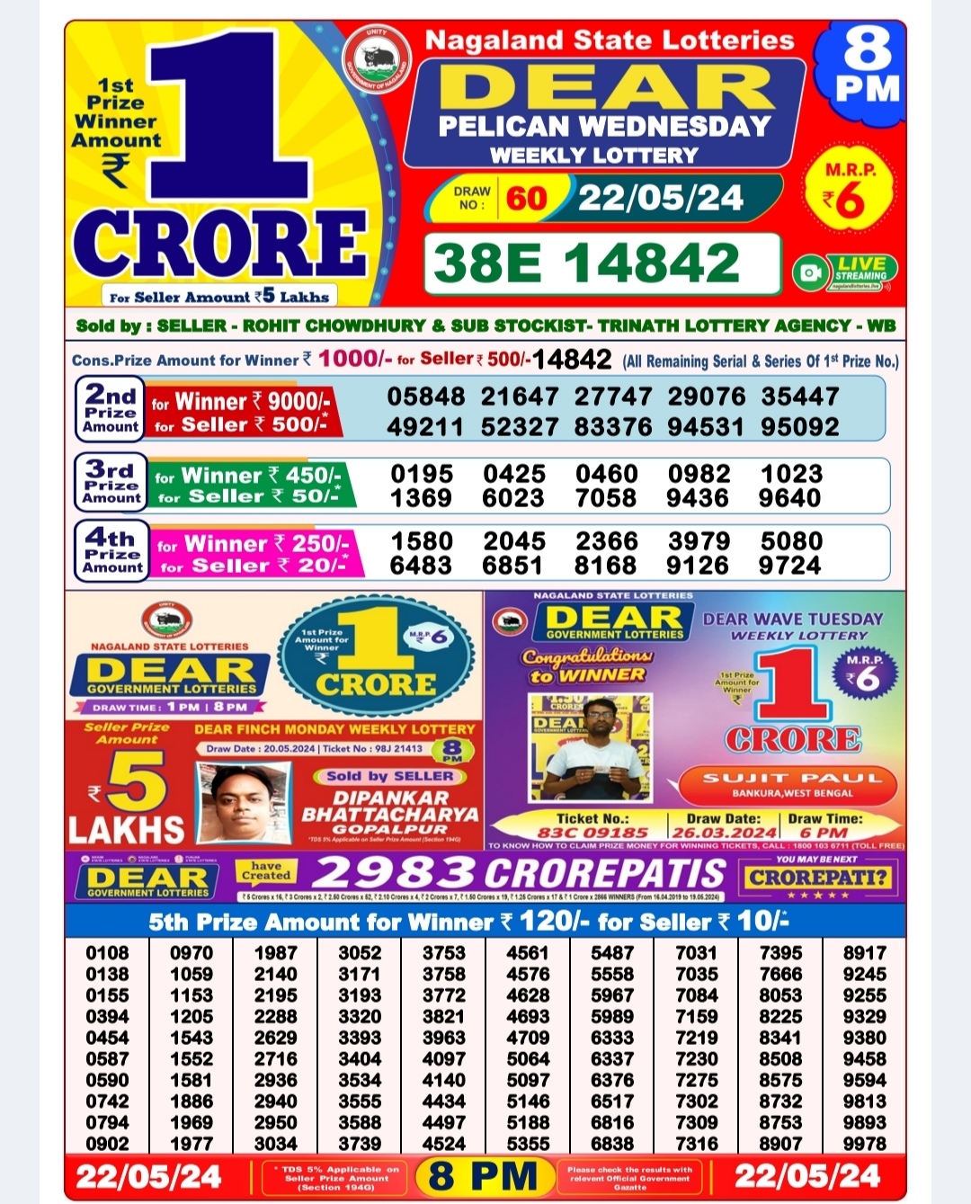 Dear10 solid Wednesday weekly lottery 7pm result 22/05/24