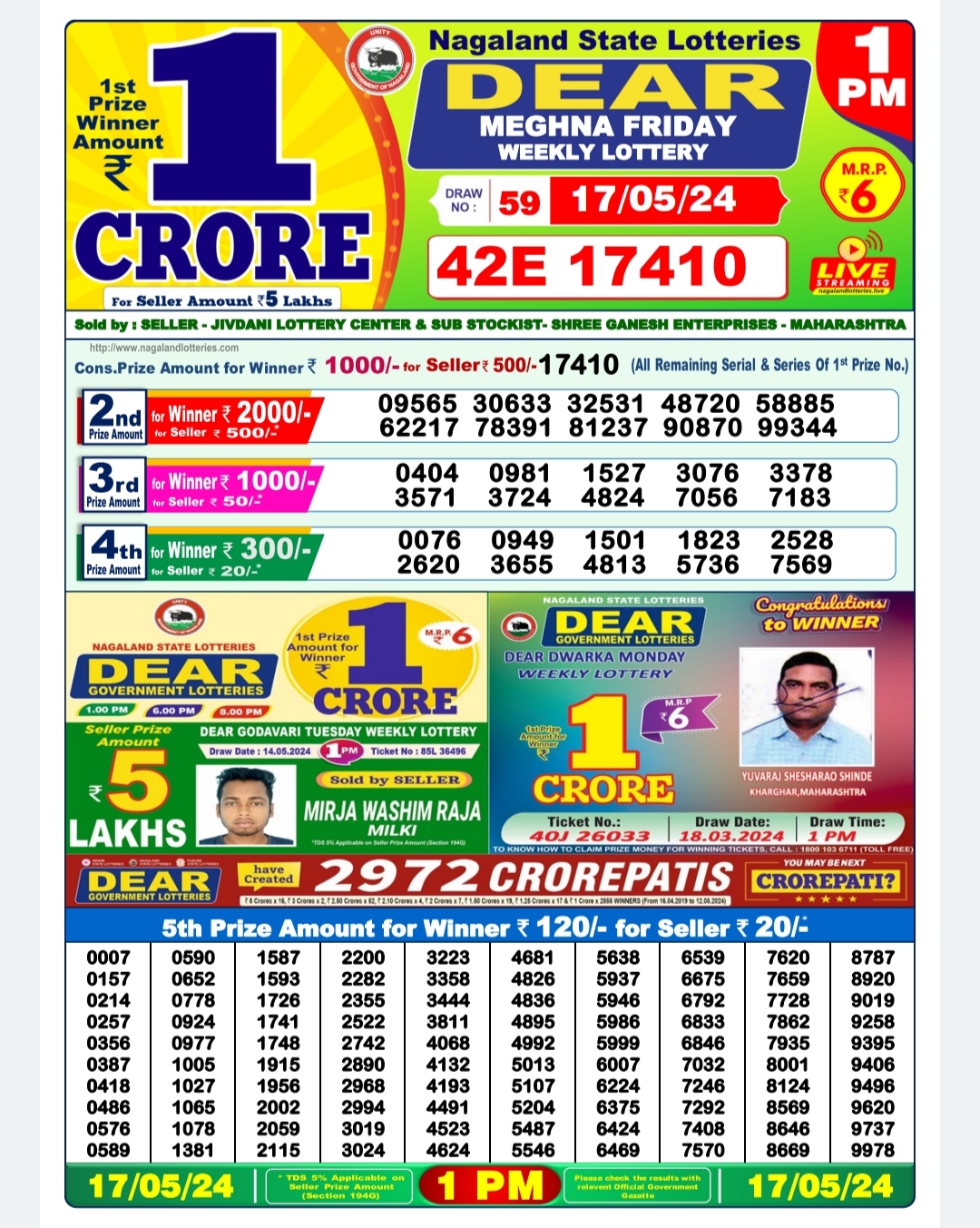Dear meghna Friday weekly lottery 1pm result 17/05/24
