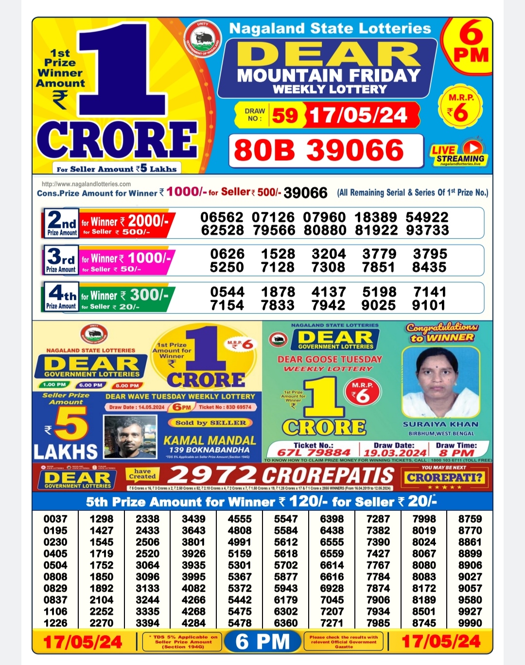 Dear mountain Friday weekly lottery 6pm result 17/05/24