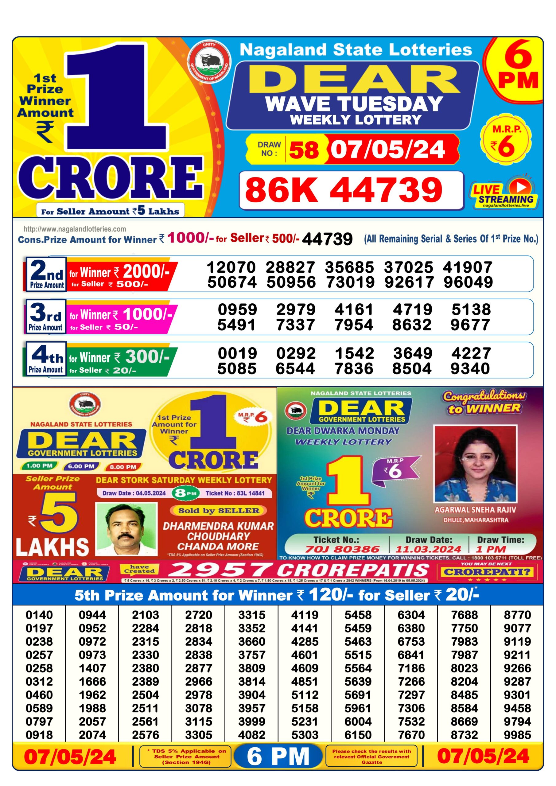 Dear wave tuesday weekly lottery 6pm result 7/05/24