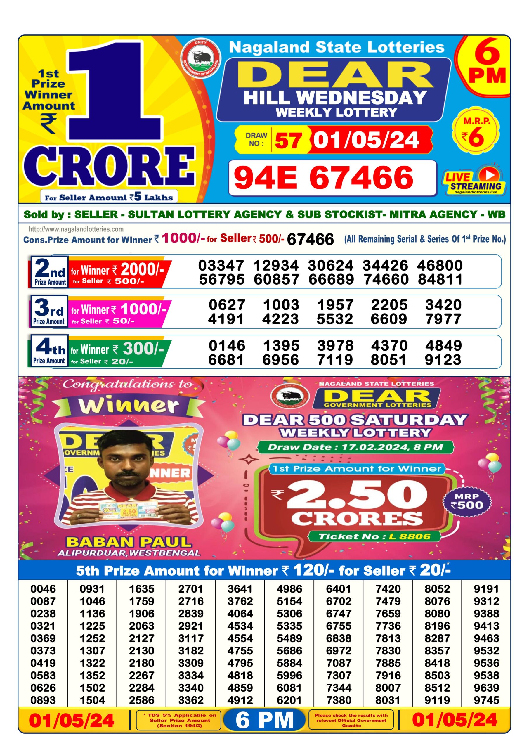 Dear hill Wednesday weekly lottery 6pm result 1/05/24