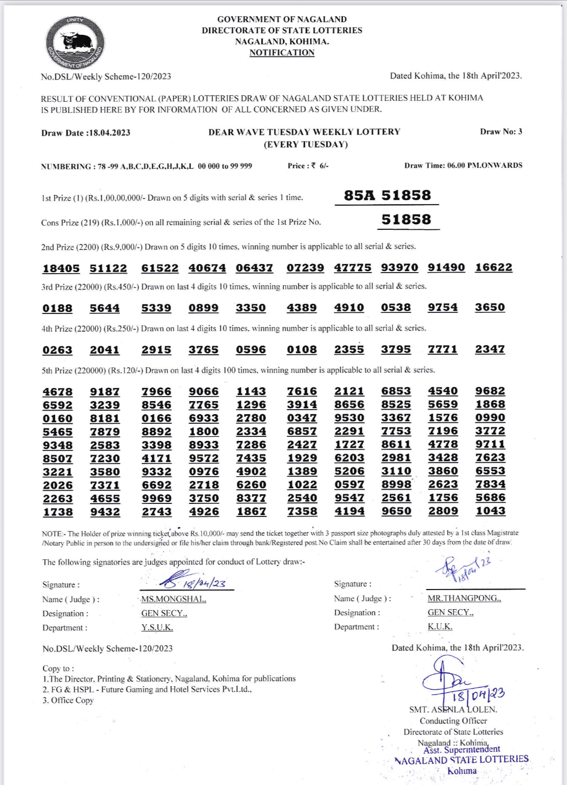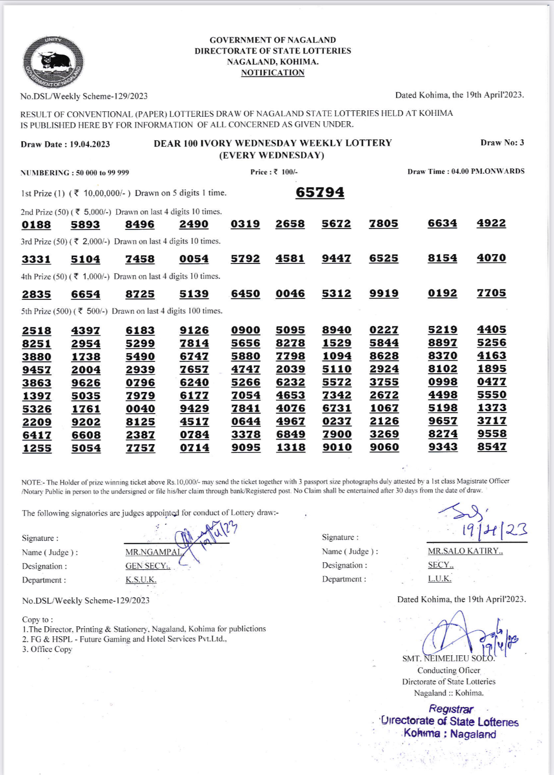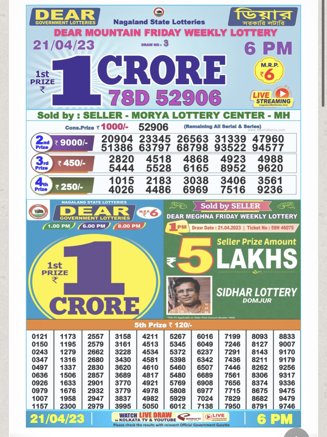 Nagaland State & Sikkim State Lottery Sambad Result 1PM 6PM 8PM