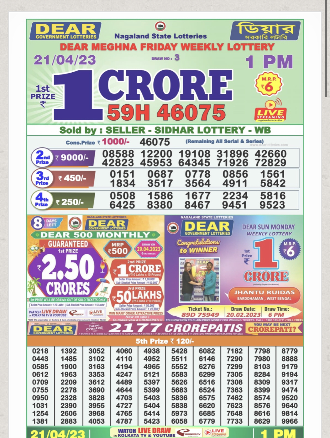 0 Comment on Dear daily lottery result 21 April 2023 6 pm