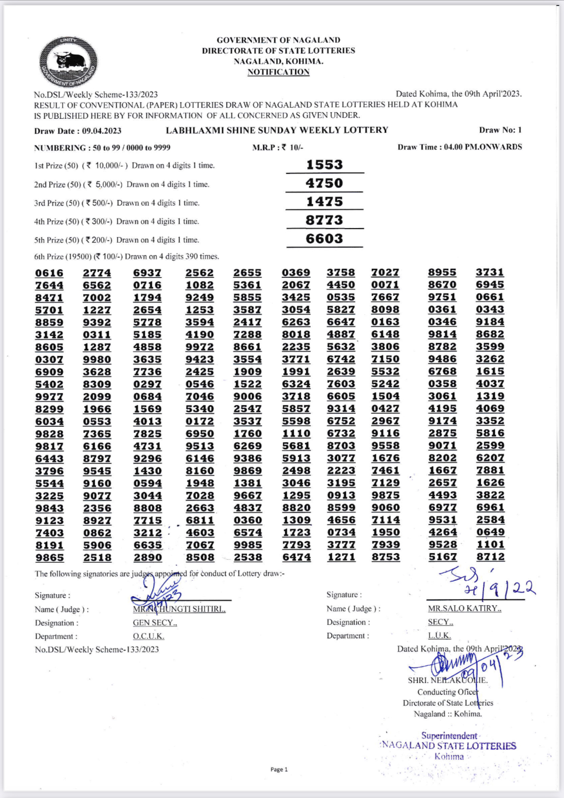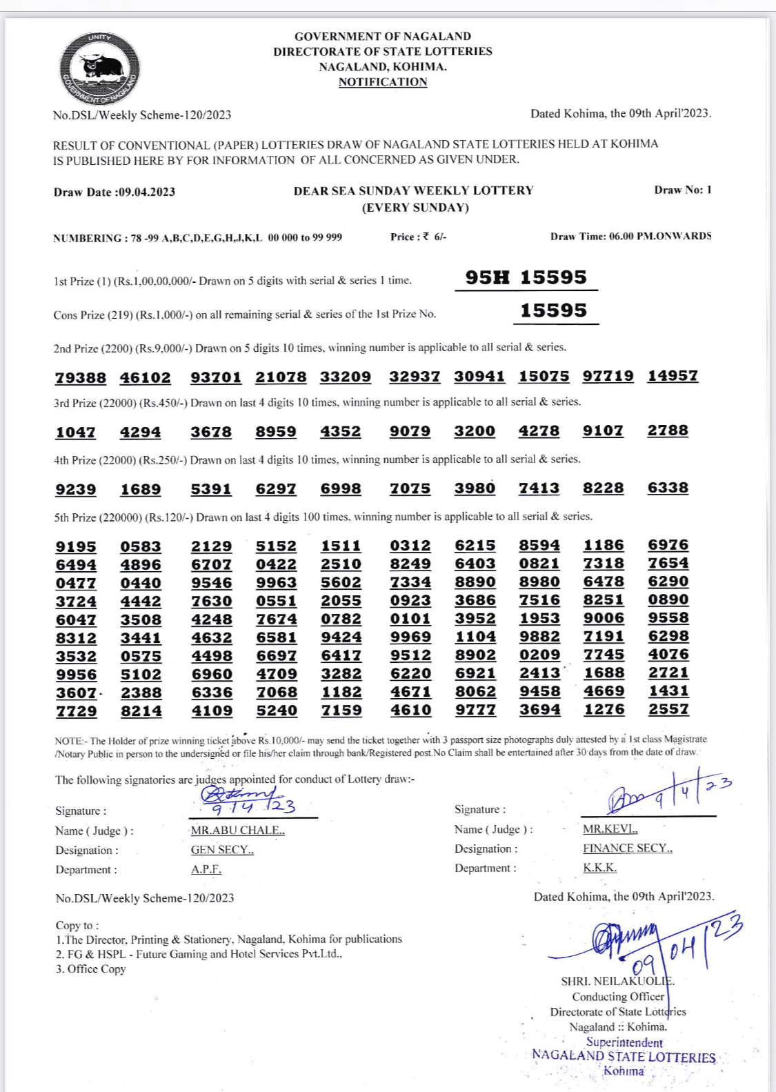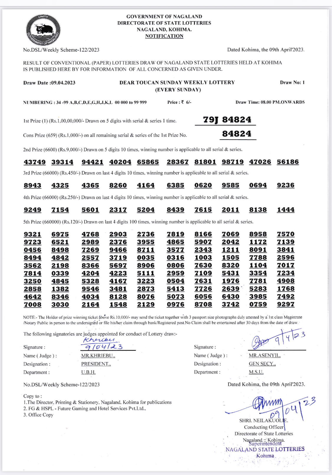 Nagaland State & Sikkim State Lottery Sambad Result 1PM 6PM 8PM