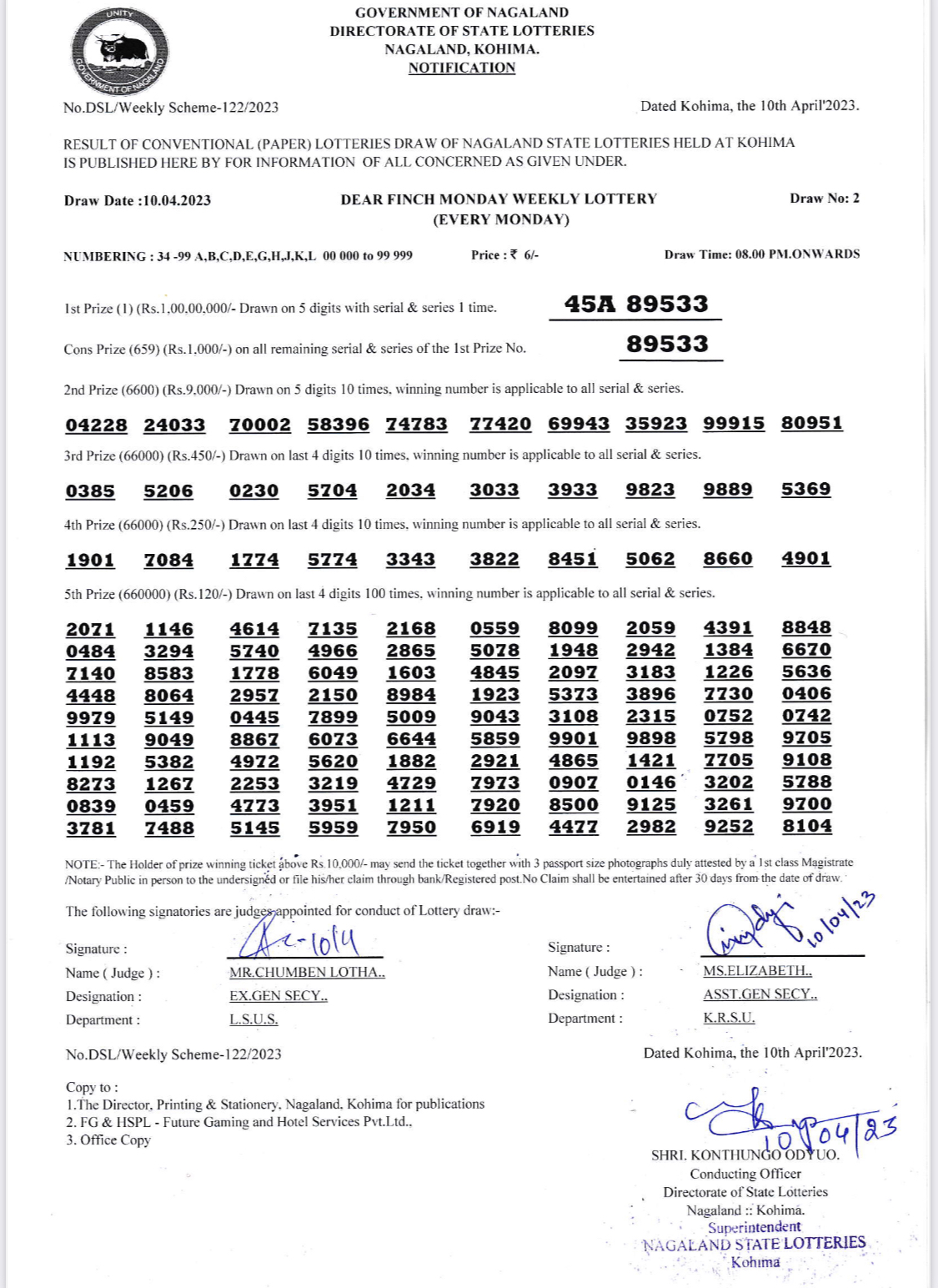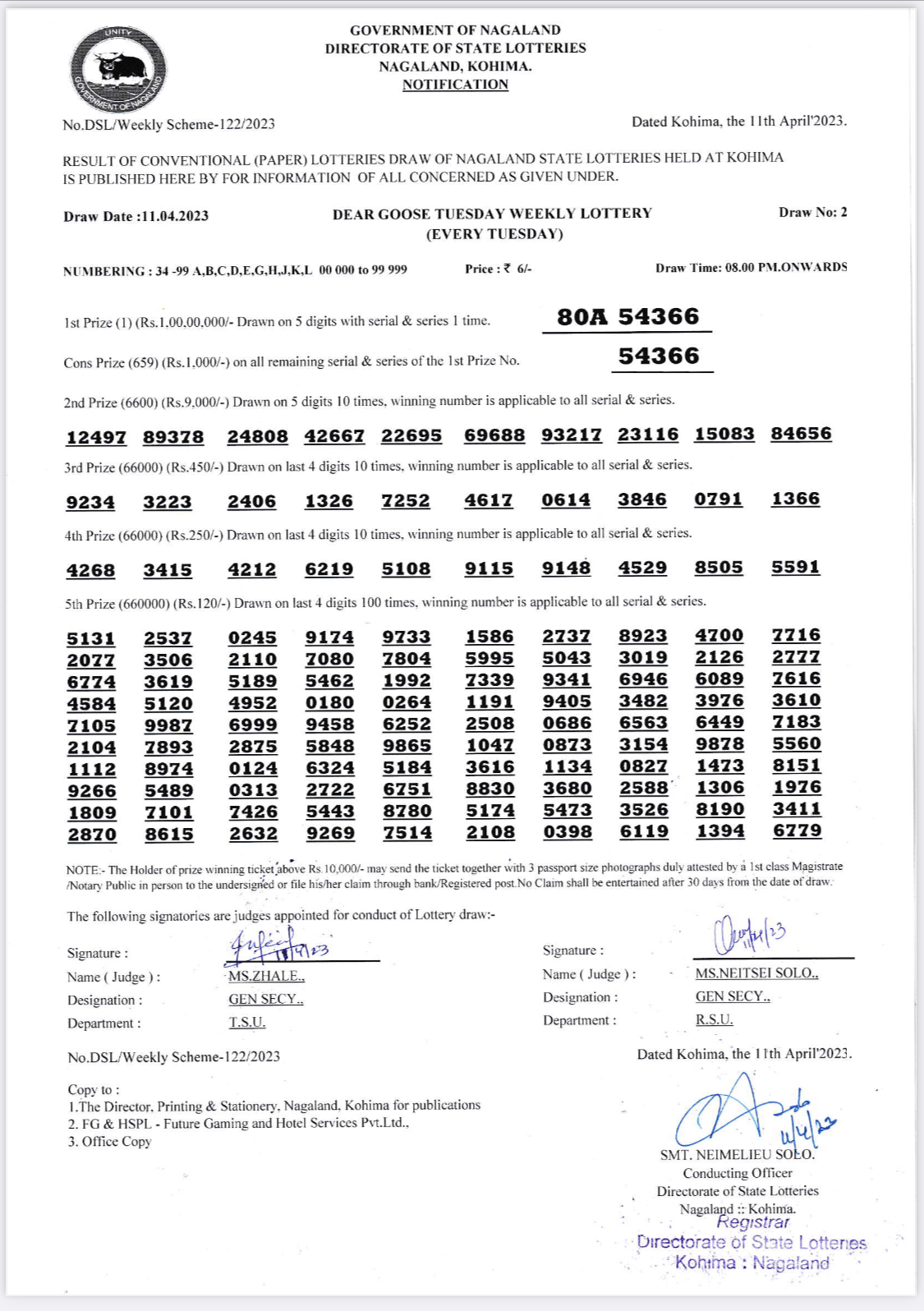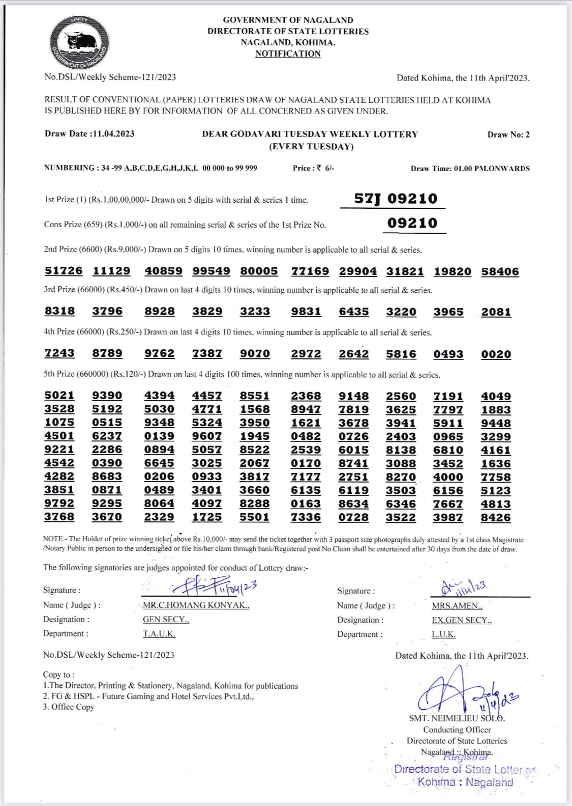 Nagaland State & Sikkim State Lottery Sambad Result 1PM 6PM 8PM