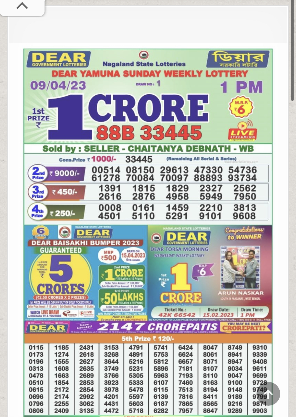 0 Comment on Dear daily lottery result 9 April 2023 8 pm