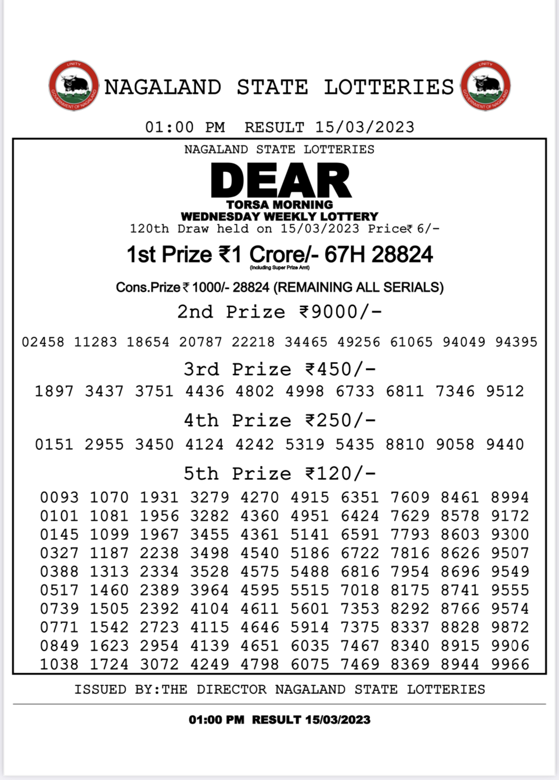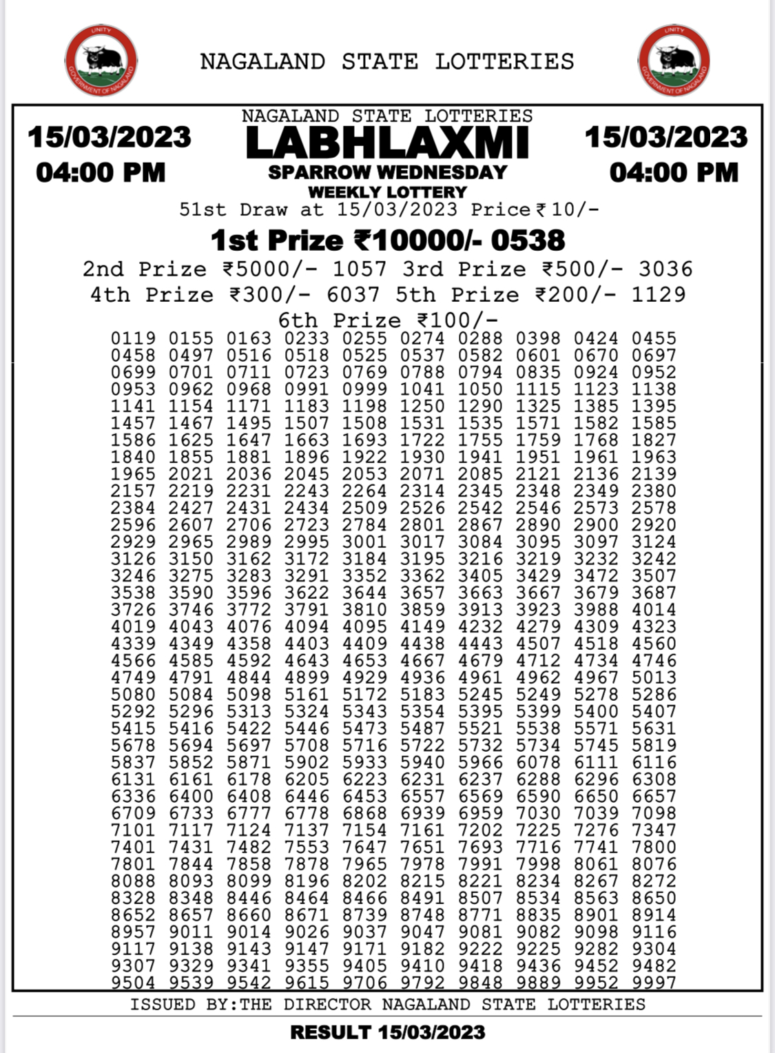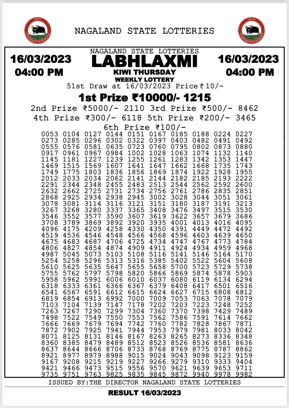 Nagaland State & Sikkim State Lottery Sambad Result 1PM 6PM 8PM