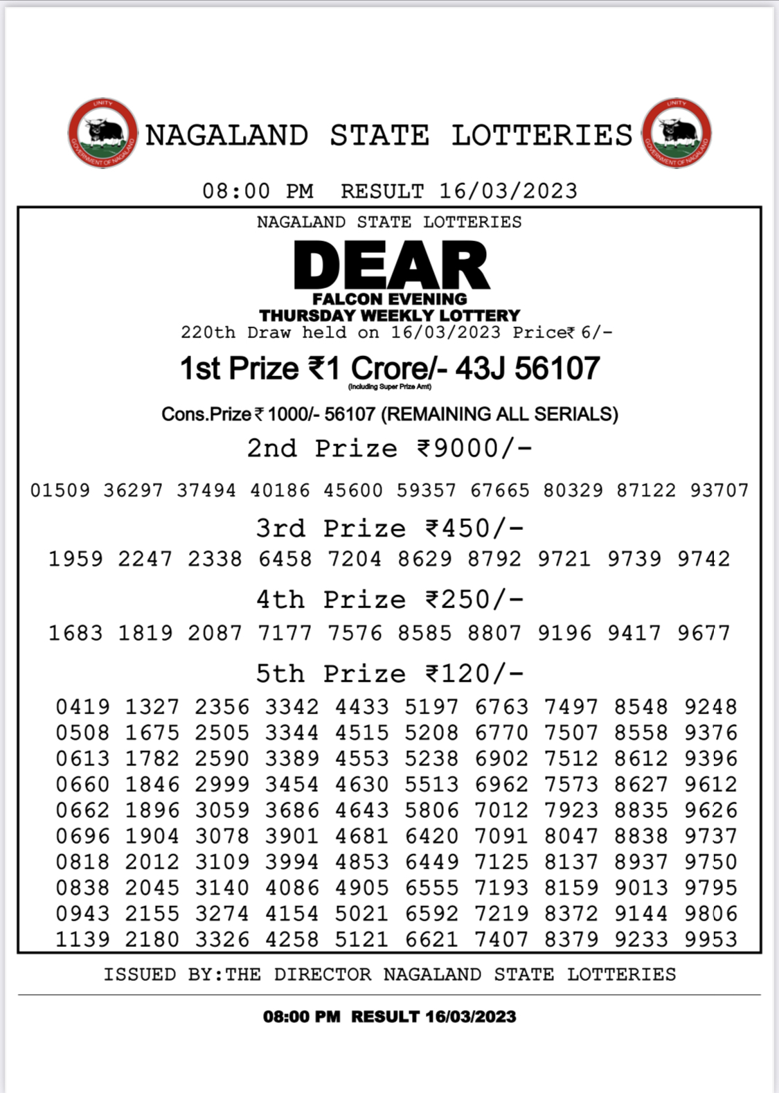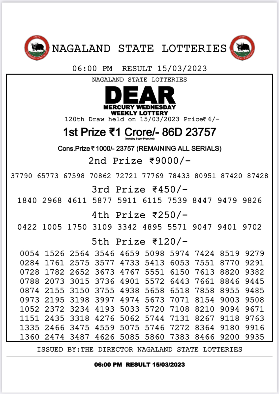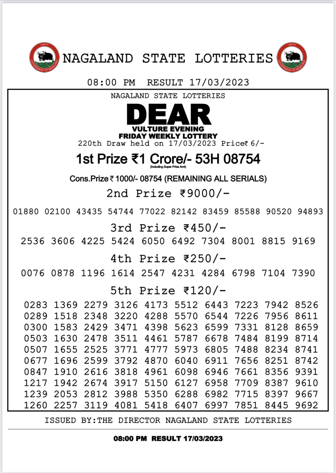 Nagaland State & Sikkim State Lottery Sambad Result 1PM 6PM 8PM