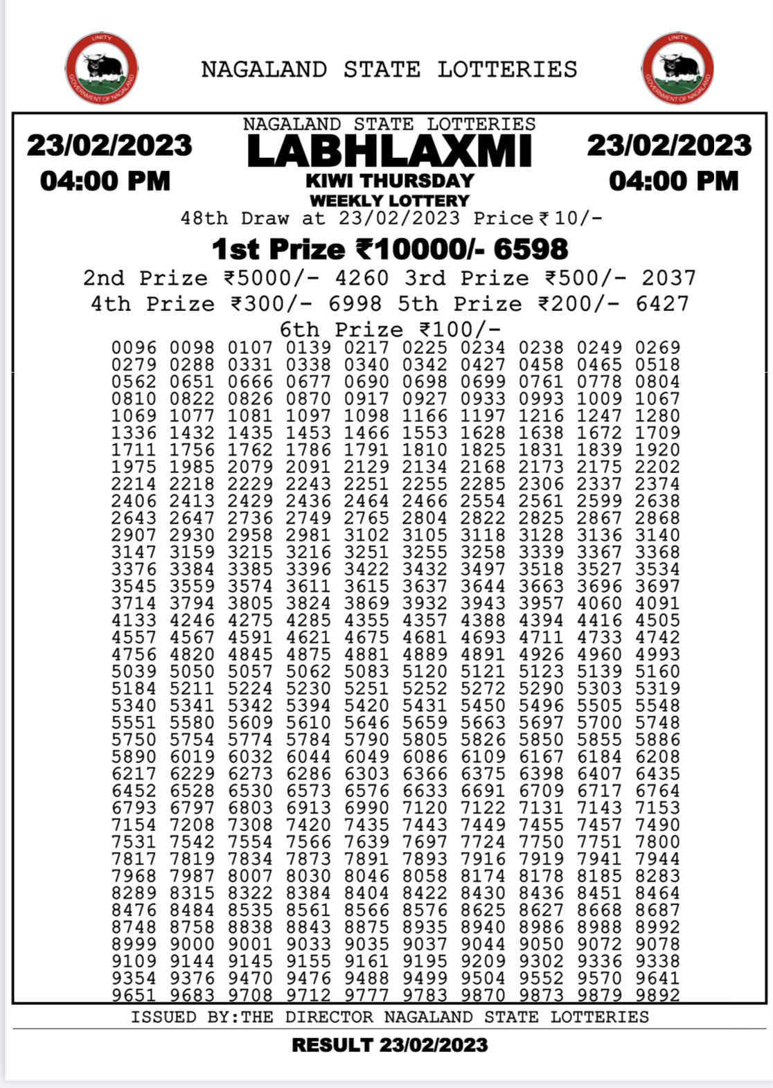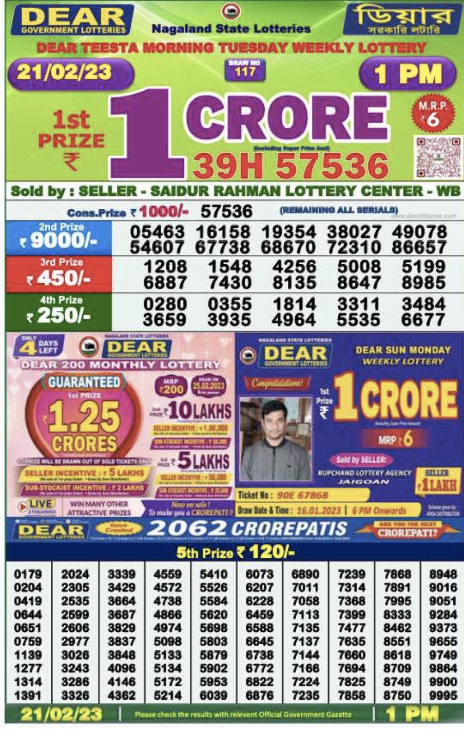 Dear daily lottery result 23 Feb 2023 1 pm
