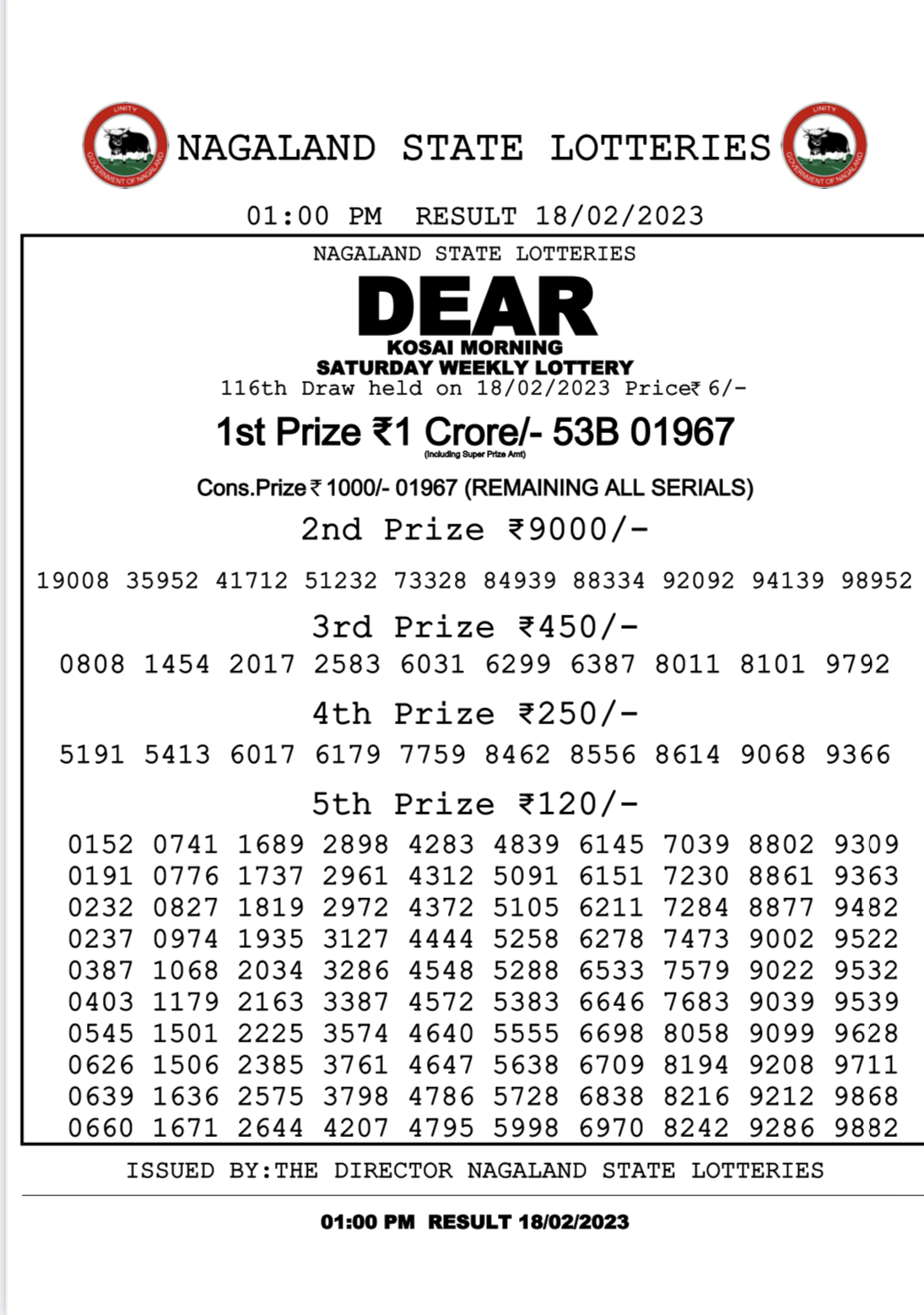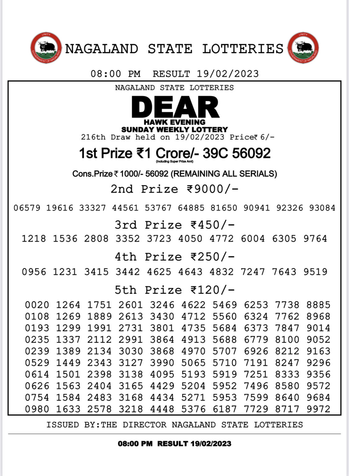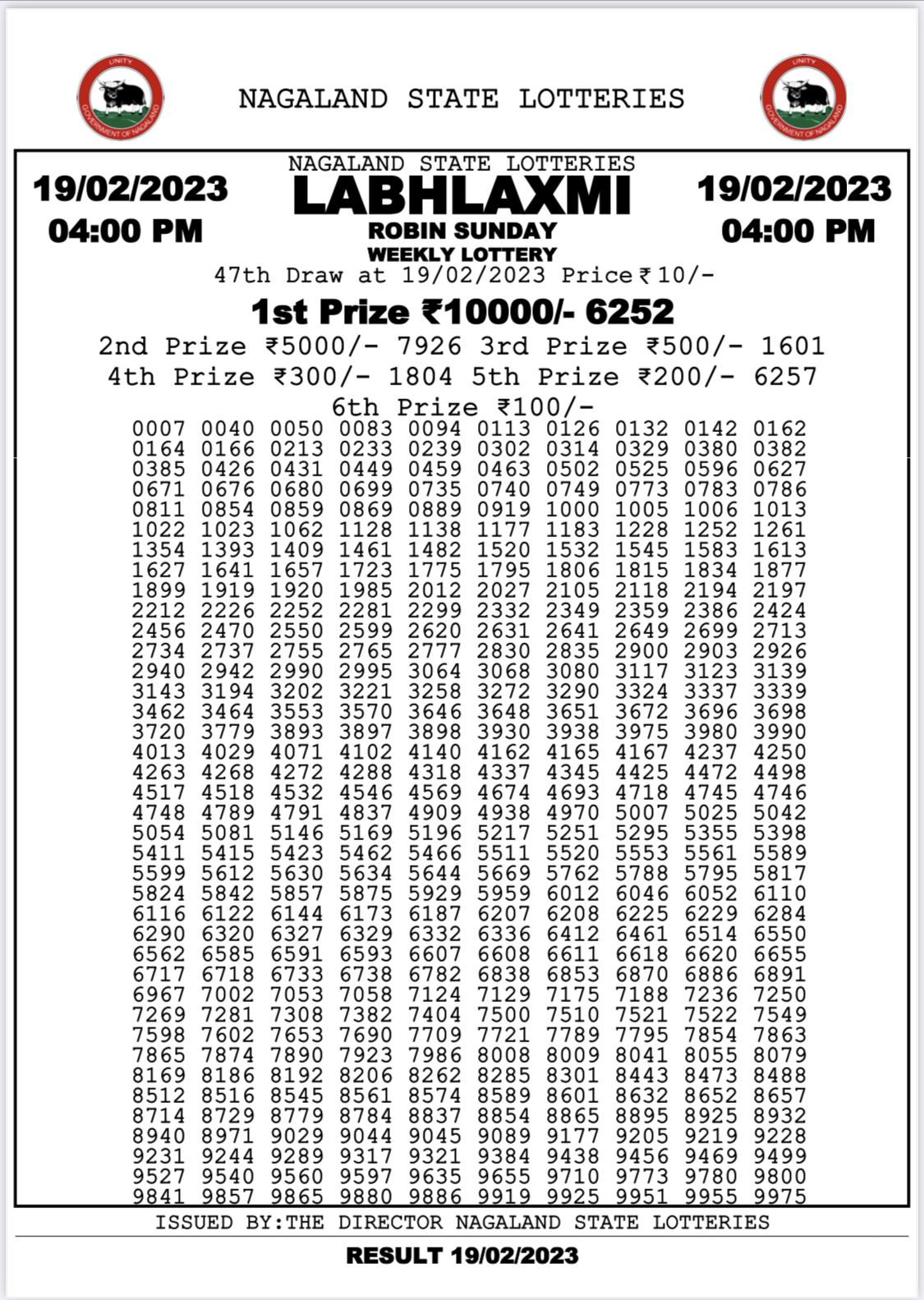 Nagaland State & Sikkim State Lottery Sambad Result 1PM 6PM 8PM