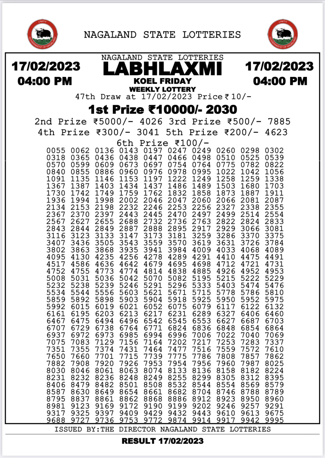 Nagaland State & Sikkim State Lottery Sambad Result 1PM 6PM 8PM