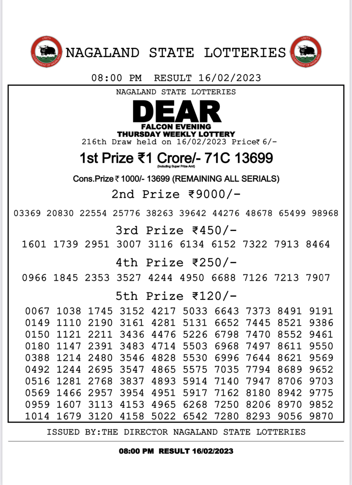 0 Comment on Dear Daily Lottery Result 16feb 2023 1pm