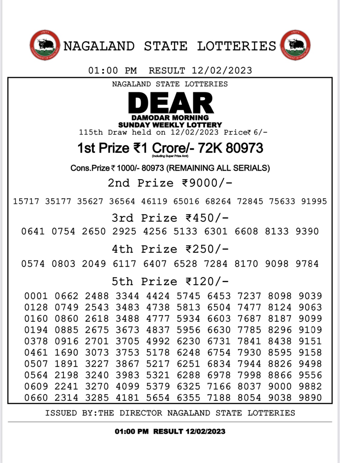 0 Comment on Dear Daily Lottery Result 12feb 2023 1PM