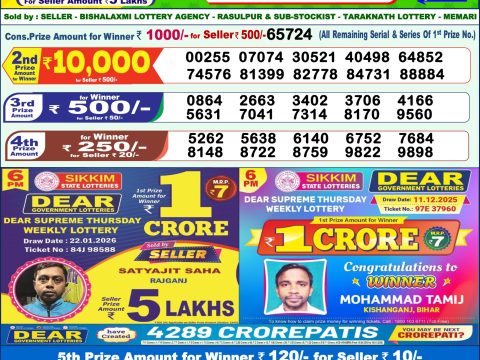 • Lottery Sambad Result Today 25.01.26 | 6 PM