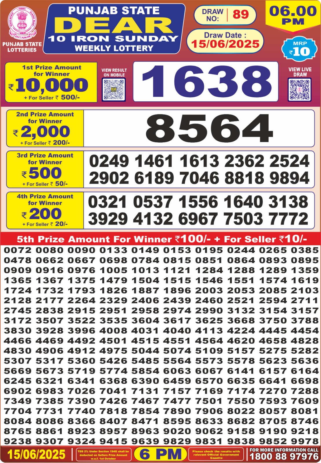 Lottery sambad  Punjab 6PM Result 15-06-25