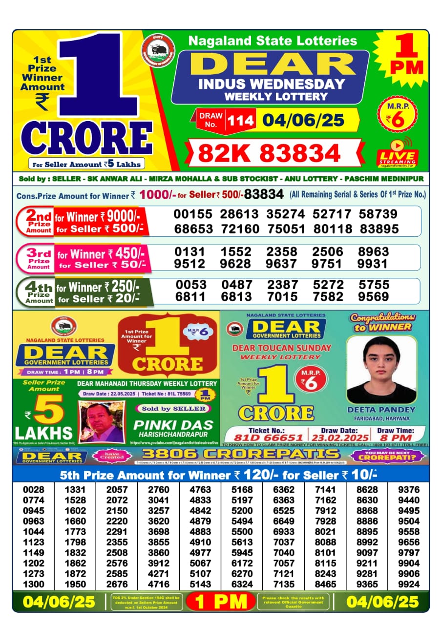 Lottery sambad  Dear 50 5PM Result 04-06-25