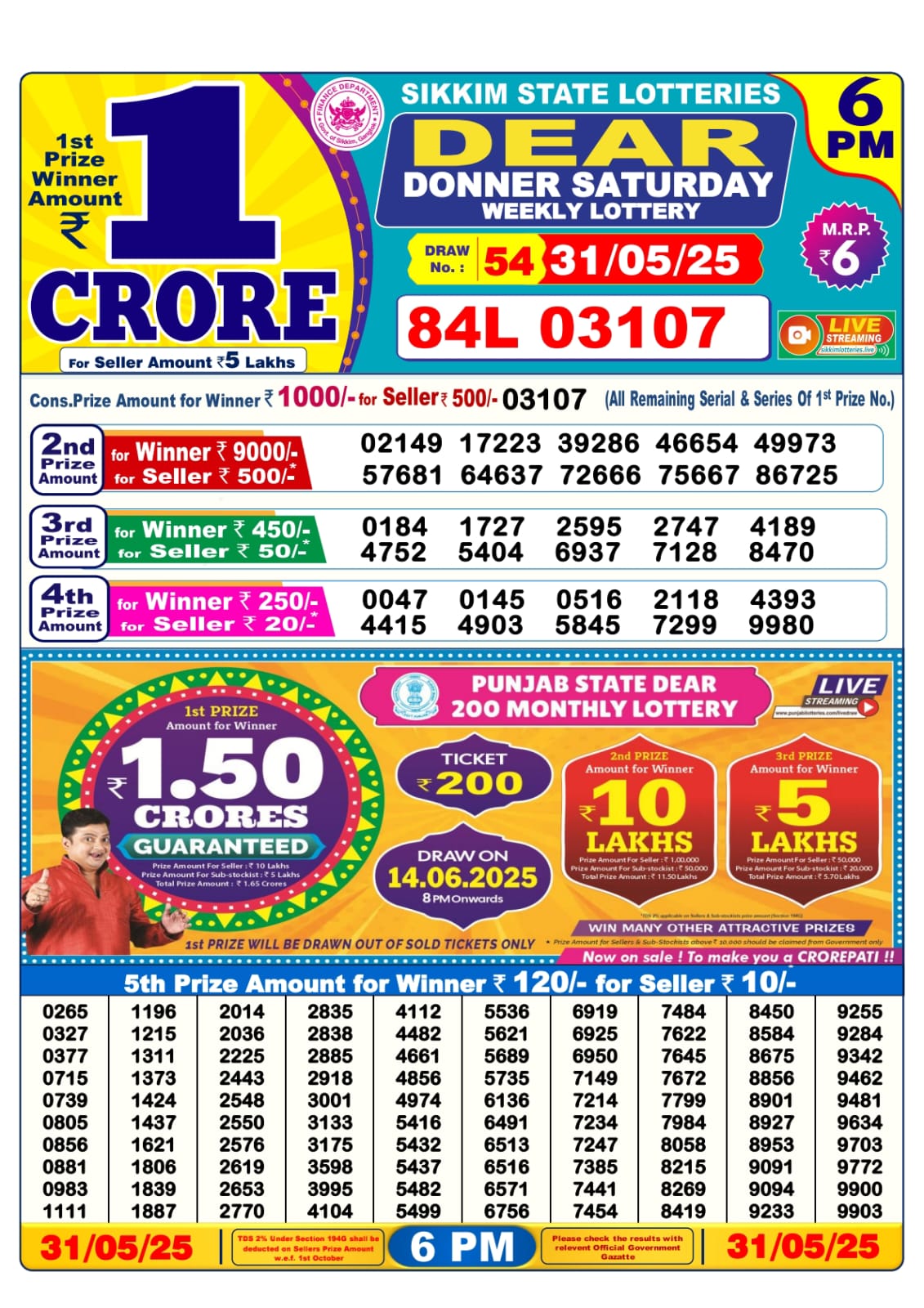 0 Comment on Lottery sambad today Punjab 6PM 31-05-2025