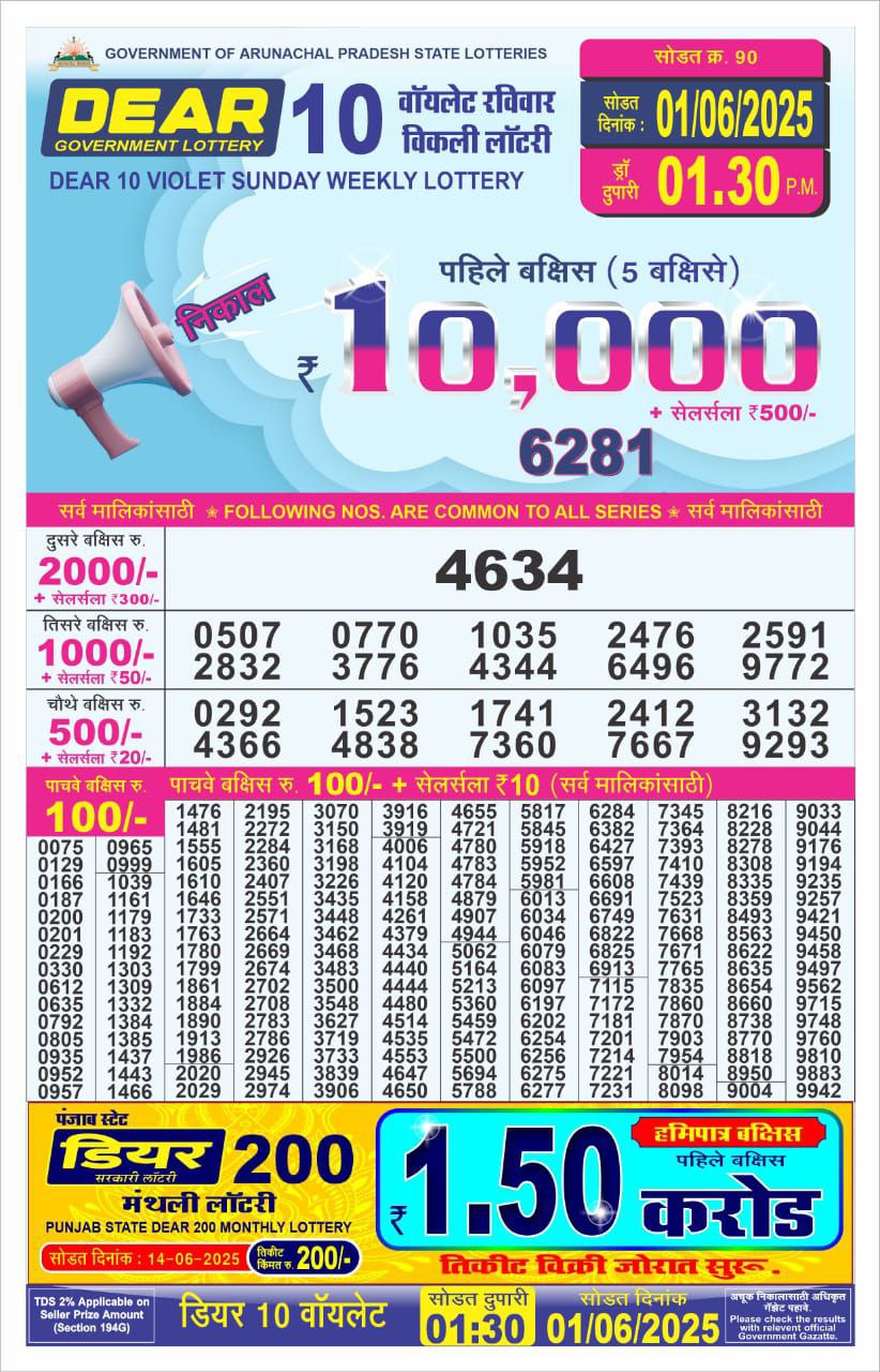 Lottery sambad today Dear 10 1.30PM 01-06-2025