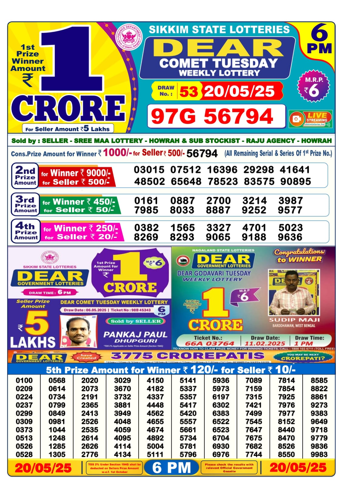 Lottery sambad today 6PM 20-05-2025