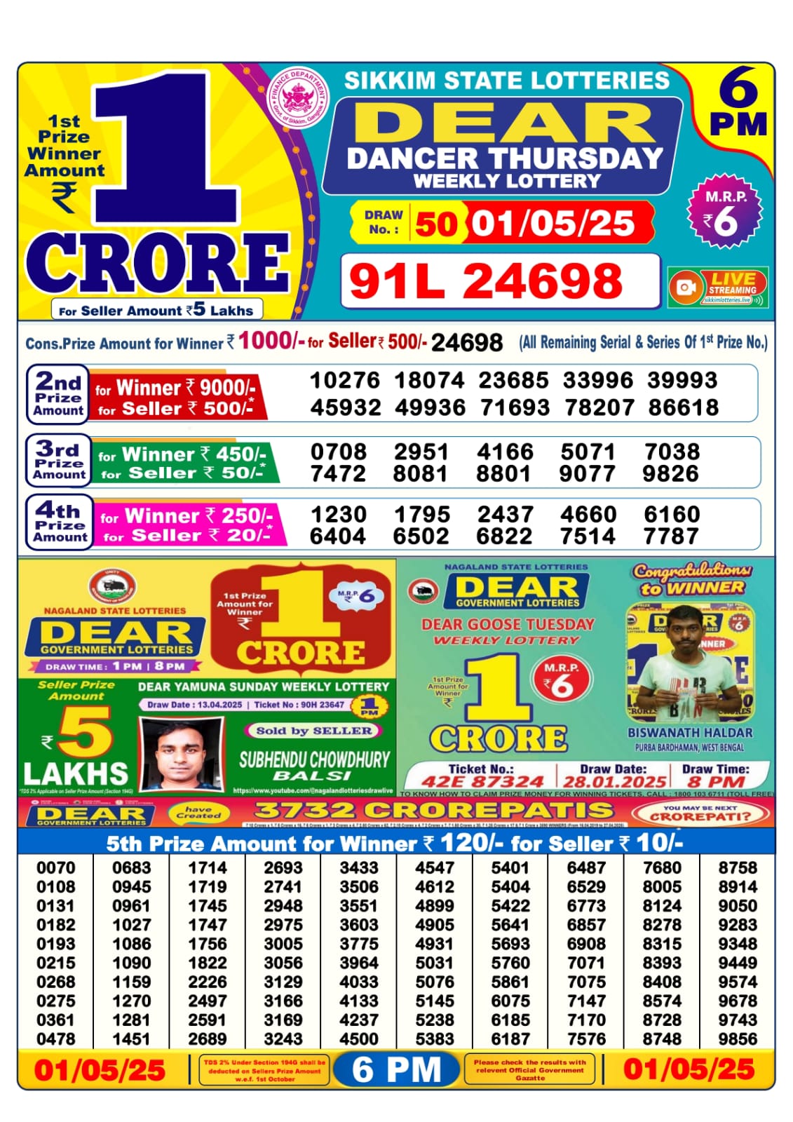 Lottery sambad today 6PM 01-05-2025