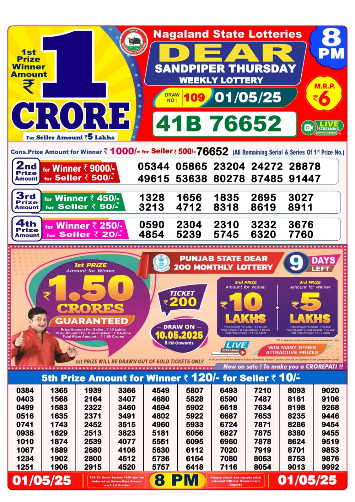 Lottery sambad today Dear 10 7PM 01-05-2025