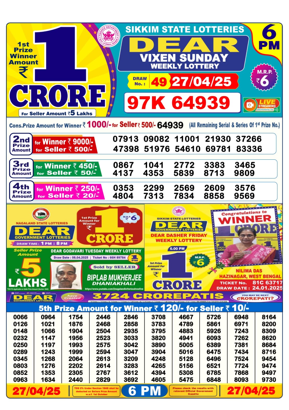 0 Comment on Lottery sambad today 6PM 27-04-2025