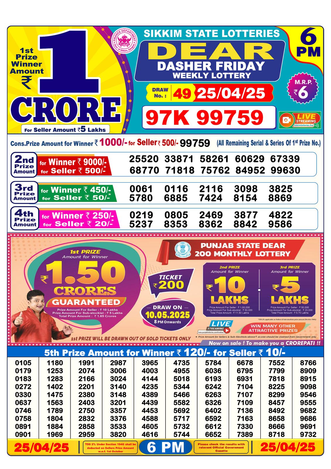 0 Comment on Lottery sambad today Punjab 6PM 25-04-2025